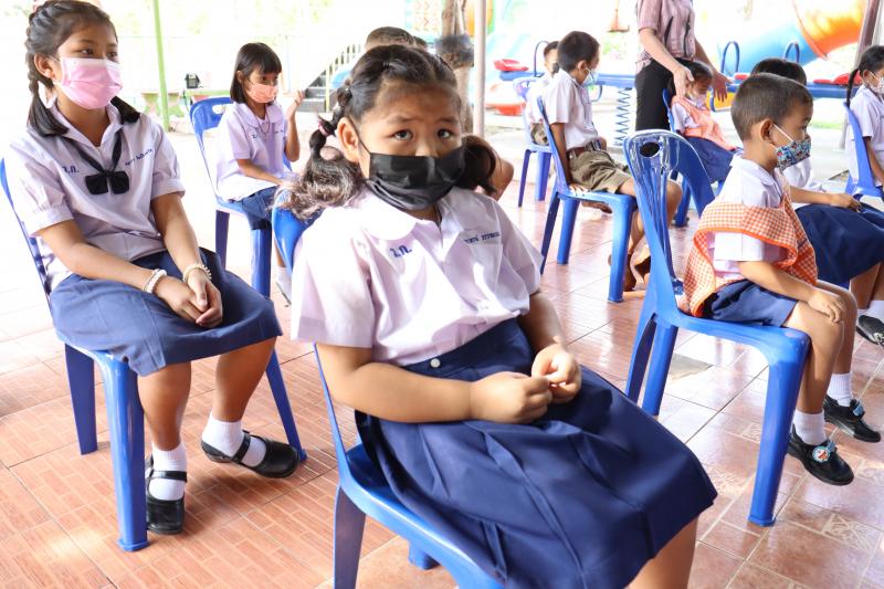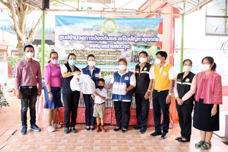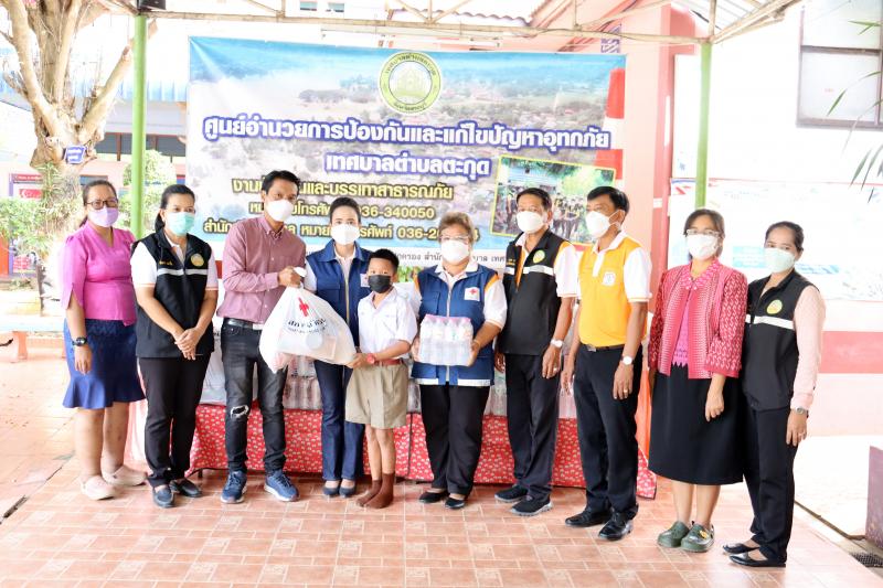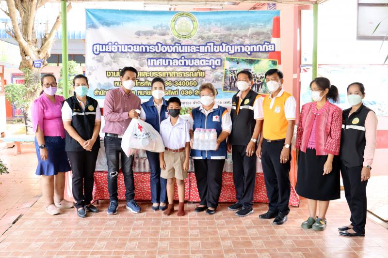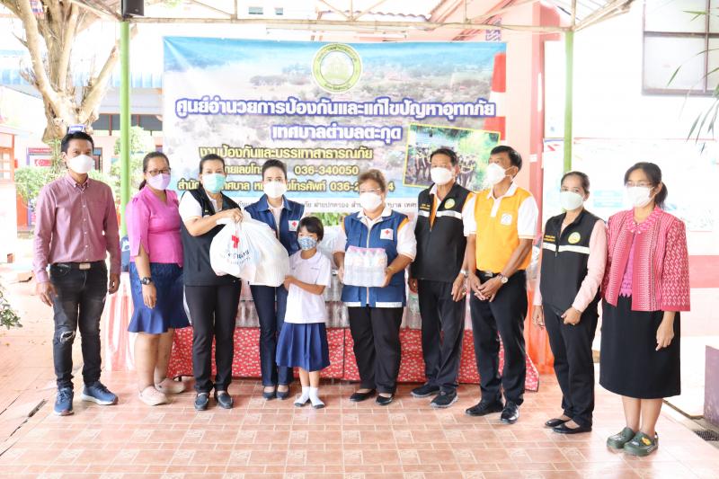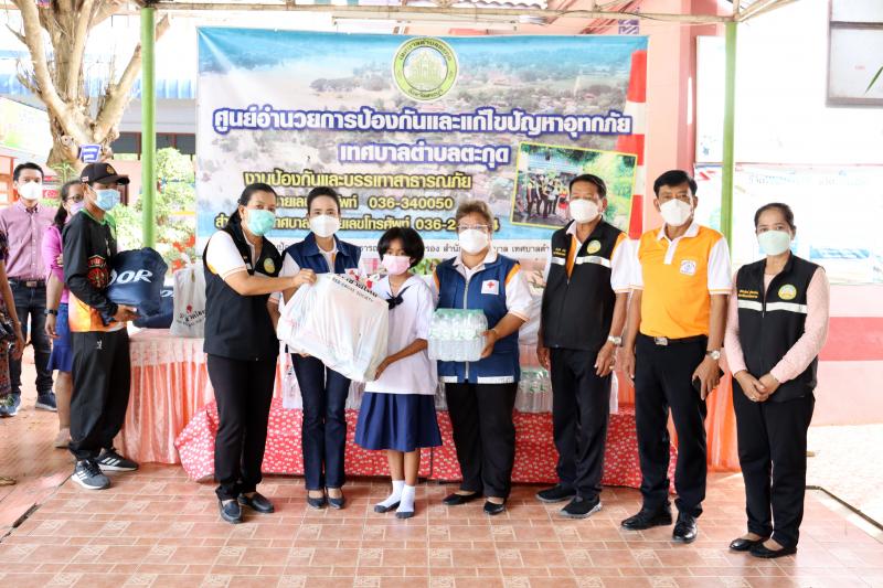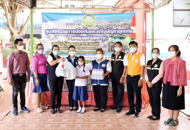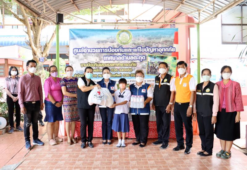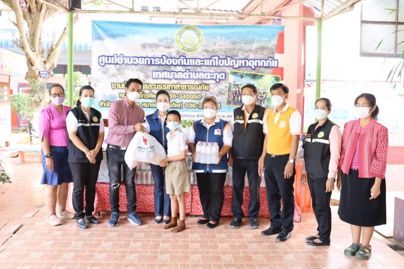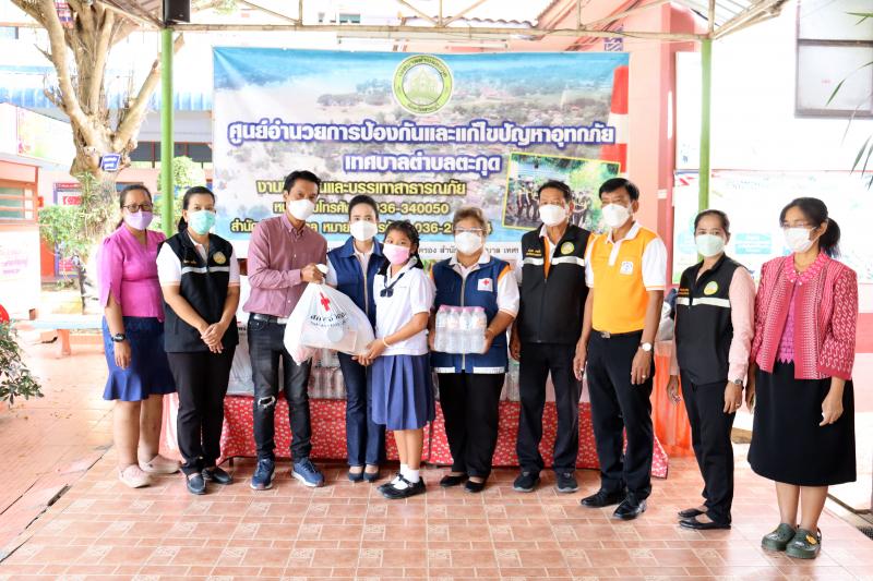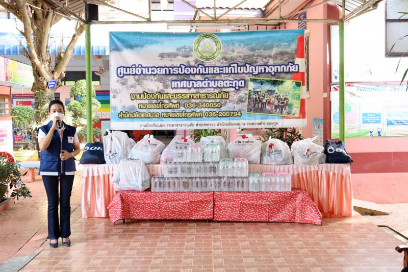 แจกถุงยังชีพ “ชุดธารน้ำใจ" ช่วยเหลือผู้ประสบภัยจากสภากาชาดไทย ให้กับเด็กนักเรียนโรงเรียนวัดบ้านกล้วย