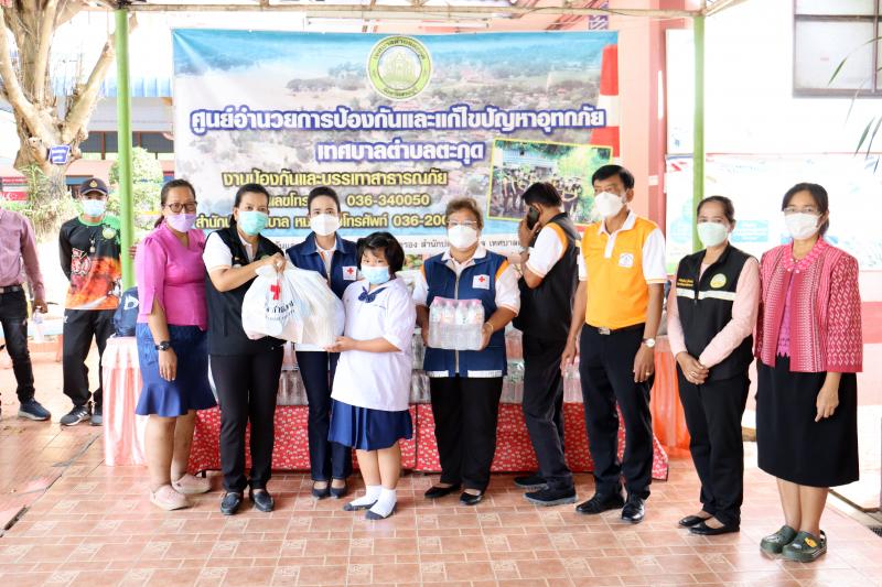 รายละเอียด : วันอังคารที่ 1 พฤศจิกายน พ.ศ. 2565 เวลา 09.00 น. เทศบาลตำบลตะกุด นำโดย นางสาวสิริกัลยา เนตรอินทร์ นายกเทศมนตรีตำบลตะกุด พร้อมด้วย คณะผู้บริหารเทศบาล สมาชิกสภาเทศบาล เขต 1 , เขต 2 , ปลัดเทศบาลฯ , หัวหน้าส่วนราชการ พนักงานและเจ้าหน้าที่ของเทศบาลฯ ได้ร่วมแจกถุงยังชีพ “ชุดธารน้ำใจช่วยเหลือผู้ประสบภัยจากสภากาชาดไทย ให้กับเด็กนักเรียนโรงเรียนวัดบ้านกล้วย ผู้ประสบอุทกภัย ในพื้นที่ตำบลตะกุด ที่ได้รับผลกระทบจากแม่น้ำป่าสักท่วมล้นเข้าบ้านเรือนของนักเรียน และเส้นทางเข้า-ออก ตำบลตะกุด อำเภอเมืองสระบุรี จังหวัดสระบุรี รวมทั้งสิ้น 19 ชุด