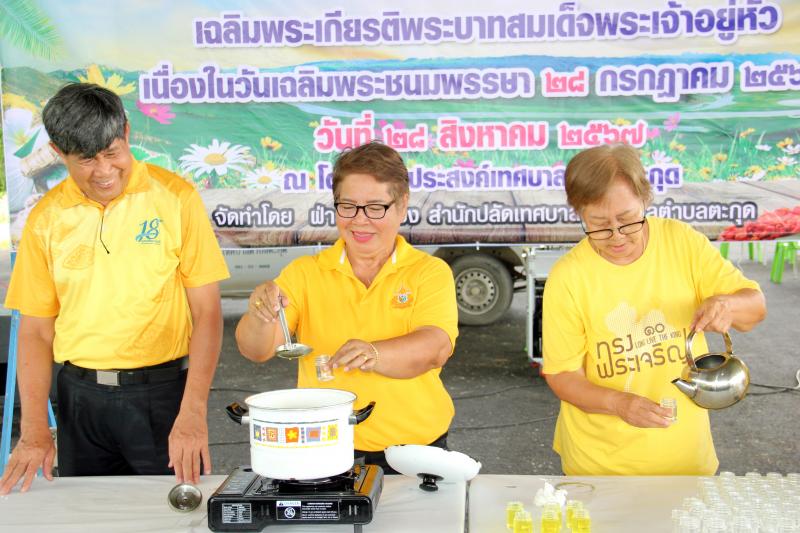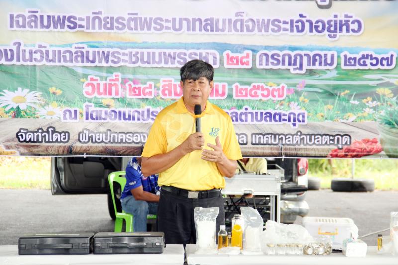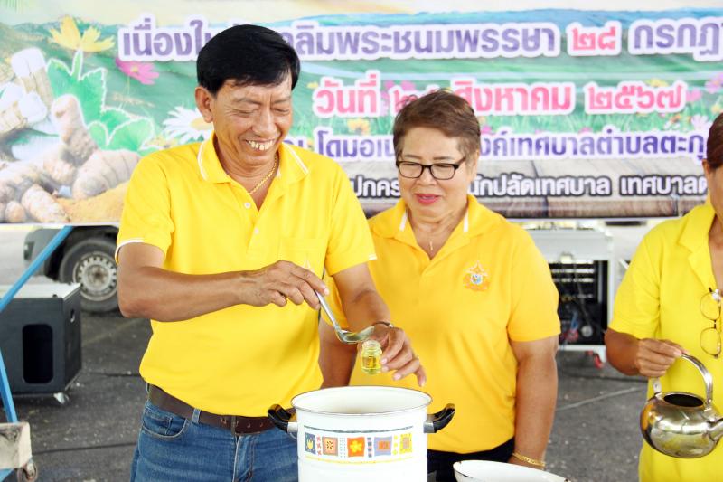 รายละเอียด : วันพุธที่ 28 สิงหาคม 2567 เวลา 09.00 น.เทศบาลตำบลตะกุด นำโดย นางสาวสิริกัลยา เนตรอินทร์ นายกเทศมนตรีตำบลตะกุด เป็นประธานพิธีเปิด “โครงการ 1 อปท. 1 สวนสมุนไพร เฉลิมพระเกียรติพระบาทสมเด็จพระเจ้าอยู่หัว เนื่องในวันเฉลิมพระชนมพรรษา 28 กรกฎาคม 2567” พร้อมด้วย คณะผู้บริหารเทศบาล สมาชิกสภาเทศบาล เขต 1 และเขต 2 หัวหน้าส่วนราชการ พนักงานเทศบาล ลูกจ้างประจำ พนักงานจ้างเทศบาลตำบลตะกุด ผู้นำชุมชน และประชาชนตำบลตะกุด เพื่อแสดงออกถึงความจงรักภักดี และสำนึกในพระมหากรุณาธิคุณ โดยได้น้อมนำหลักปรัชญาเศรษฐกิจพอเพียงและพระราชกรณียกิจ ด้านสมุนไพรของพระบาทสมเด็จ พระบรมชนกาธิเบศรมหาภูมิพลอดุลยเดชมหาราช บรมนาถบพิตร ตลอดจนพระราชปณิธานของ พระบาทสมเด็จพระเจ้าอยู่หัว ในการ “สืบสาน รักษา และต่อยอด” ส่งเสริมให้พื้นที่มีแหล่งเรียนรู้ท้องถิ่นเกี่ยวกับชนิดของพืชพรรณสมุนไพร การใช้ประโยชน์สมุนไพรไทย รู้จักการนำสมุนไพรไปใช้ประโยชน์ การอนุรักษ์และการขยายพันธุ์พืชสมุนไพร และแปรรูปสมุนไพรรูปแบบต่างๆ การจัดโครงการในครั้งนี้ เทศบาลตำบลตะกุด ขอขอบคุณ นายไพฑูรย์ อ่วมเชื้อ พนักงานเทศบาล ตำแหน่ง นักพัฒนาชุมชนชำนาญการ องค์การบริหารส่วนตำบลบ้านป่า เป็นวิทยากรอบรมให้ความรู้เกี่ยวกับสมุนไพร และบรรยายสาธิตการทำยาหม่องสมุนไพร และการทำน้ำมันเหลืองสมุนไพร ณ โดมอเนกประสงค์เทศบาลตำบลตะกุด
