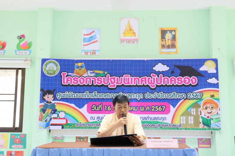 รายละเอียด : วันพฤหัสบดีที่ 16 พฤษภาคม พ.ศ. 2567 เวลา 09.00 น. เทศบาลตำบลตะกุด นำโดย นางสาวสิริกัลยา เนตรอินทร์ นายกเทศมนตรีตำบลตะกุด ได้มอบหมายให้ นายมานพ แสงสว่าง รองนายกเทศมนตรีตำบลตะกุด เป็นประธานพิธีเปิดโครงการปฐมนิเทศผู้ปกครอง เพื่อเป็นการเตรียมความพร้อมก่อนการเปิดภาคเรียนที่ 1 ประจำปีการศึกษา 2567 ณ ศูนย์พัฒนาเด็กเล็กเทศบาลตำบลตะกุด หมู่ที่ 6 ตำบลตะกุด พร้อมด้วย นางจันทรา แรกขึ้น เลขานุการนายกเทศมนตรี , นางสัจจาภรณ์ บุบผาสุวรรณ ปลัดเทศบาล , นางสมสุข ฐานะวร ผู้อำนวยการกองคลัง รักษาราชการแทน ผู้อำนวยการกองการศึกษา , นางนพมาส อิ่มโอษฐ์ หัวหน้าฝ่ายบริหารงานคลัง รักษาราชการแทน หัวหน้าฝ่ายบริหารการศึกษา , นางสาวสุพรรณี เกตุแก้ว ครู , หัวหน้าส่วนราชการ เจ้าหน้าที่เทศบาล และผู้ปกครองนักเรียน โดยมีวัตถุประสงค์ เพื่อชี้แจงให้ทราบถึงนโยบายกฎระเบียบและการดำเนินงานของศูนย์พัฒนาเด็กเล็กในการจัดการเรียนการสอนการปรับสภาพความเป็นอยู่จากบ้านสู่ศูนย์พัฒนาเด็กเล็ก ทั้งเปลี่ยนสภาพการดำเนินชีวิตการปรับตัวให้เข้ากับสังคม การใช้ชีวิตอยู่ร่วมกันในสังคมของนักเรียนในวัยเดียวกันจึงมีความจำเป็นอย่างยิ่งที่ผู้ปกครองจะต้องทราบถึงแนวทางการเรียนการสอนและการพัฒนาคุณภาพชีวิตของนักเรียนในวัยนี้ เพื่อให้มีส่วนร่วมในการปฏิบัติต่อนักเรียนให้เป็นไปในทางทิศเดียวกัน