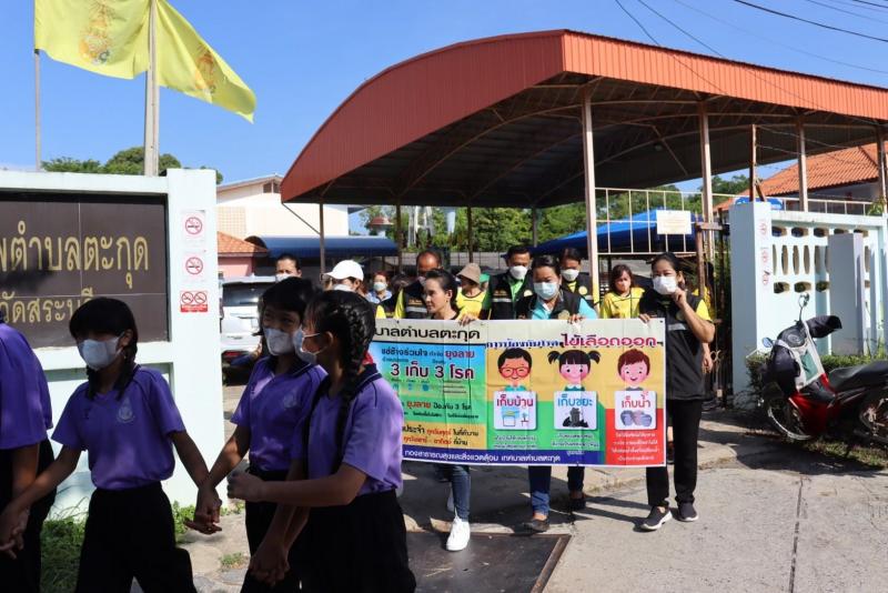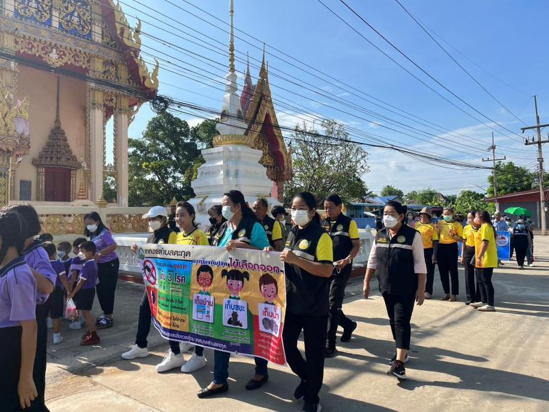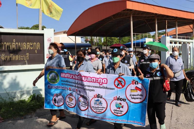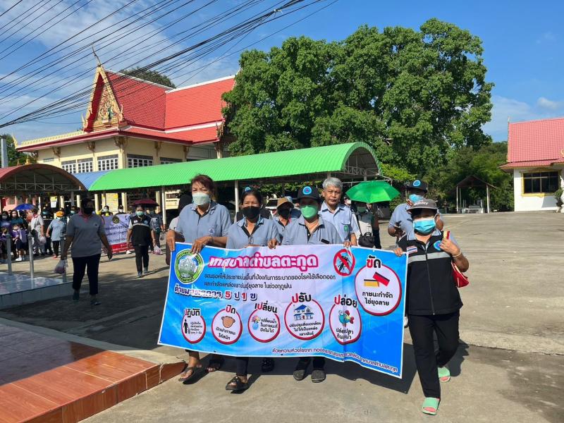 ซึ่งในช่วงเวลา 08.00 น. มีการจัดกิจกรรมเดินรณรงค์ให้ความรู้ และประชาสัมพันธ์แก่ประชาชน ถึงการกำจัดแหล่งเพาะพันธุ์ลูกน้ำยุงลาย เพื่อลดการเกิดโรคไข้เลือดออกในพื้นที่ตำบลตะกุด มีการแต่งแฟนซียุงของนักเรียนฯ และป้ายประชาสัมพันธ์ รวมถึง การแจกทรายกำจัดลูกน้ำให้กับประชาชน โดยบูรณาการร่วมกันระหว่างเทศบาลตำบลตะกุดโดยกองสาธารณสุขและสิ่งแวดล้อม ร่วมกับ โรงพยาบาลส่งเสริมสุขภาพตำบลตะกุด ครูและนักเรียนโรงเรียนวัดบ้านกล้วย โรงพยาบาลส่งเสริมสุขภาพตำบลตะกุด กำนันและผู้ใหญ่บ้านตำบลตะกุด รวมถึงอาสาสมัครสาธารณสุขตำบลตะกุด