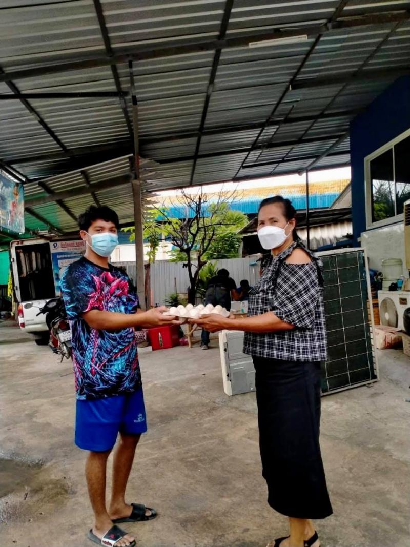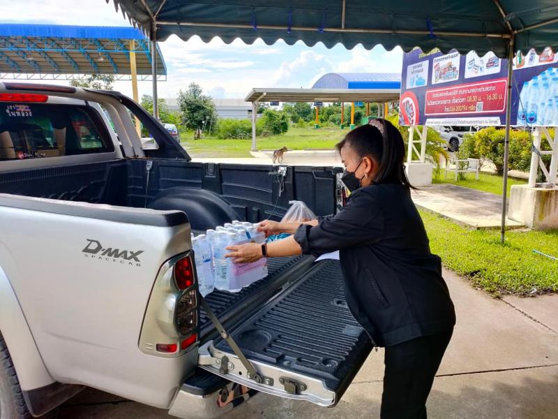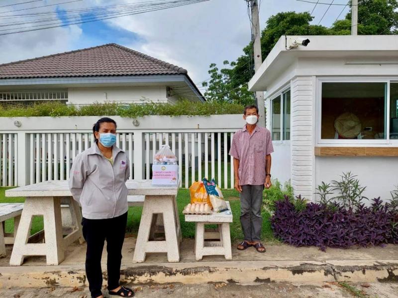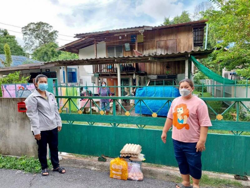 ส่งมอบถุงยังชีพสำหรับผู้กักกันตนเอง ณ ที่พักอาศัย(Home Quarantine)ให้กับผู้นำหมู่บ้านและตัวแทน อสม. เพื่อส่งต่อไปยังผู้กันกันตนในพื้นที่ตำบลตะกุด จำนวน 2 ครอบครัว