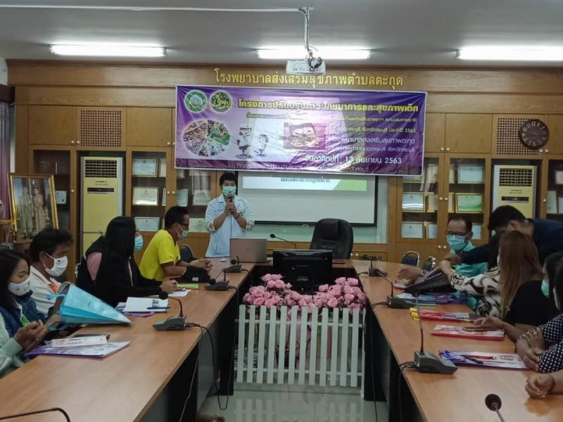 รายละเอียด : เมื่อวันอาทิตย์ที่ 13 กันยายน 2563 ที่ผ่านมา นายสมศักดิ์ พวงกุหลาบ นายกเทศมนตรีตำบลตะกุด ได้มอบหมายให้ นายวสันต์ พวงกุหลาบ รองนายกเทศมนตรีตำบลตะกุด เป็นประธานในพิธีเปิด โครงการการปรับปรุงภาวะโภชนาการและสุขภาพเด็กของสมเด็จพระกนิษฐาธิราชเจ้า กรมสมเด็จพระเทพรัตนราชสุดาฯ สยามบรมราชกุมารี ตำบลตะกุด อำเภอเมืองสระบุรี จังหวัดสระบุรี ประจำปีงบประมาณ 2563 (โครงการตามพระราชดำริด้านสาธารณสุข งบประมาณเงินอุดหนุน จากเทศบาลตำบลตะกุด ของคณะกรรมการหมู่บ้าน หมู่ที่ 5 และ หมู่ที่ 6 ตำบลตะกุด อำเภอเมืองสระบุรี จังหวัดสระบุรี ) พร้อมทั้งคณะผู้บริหารฯ ประธานและสมาชิกสภาเทศบาลตำบลตะกุด หน่วยงานรัฐในพื้นที่ ตัวแทนอาสาสมัครสาธารณสุขตำบลตะกุด และคณะกรรมการหมู่บ้านตำบลตะกุดทุกหมู่บ้าน ร่วมเป็นเกียรติในพิธีเปิด เวลา 09.00 น. ณ ห้องประชุมชั้น 2 โรงพยาบาลส่งเสริมสุขภาพตำบลตะกุด โดยมี นาย ชัชวาลย์ ชาญเดช ผู้ใหญ่บ้านหมู่ที่ 6 ตำบลตะกุด เป็นผู้กล่าวรายงานกิจกรรมในครั้งนี้ และทีมวิทยากร จากโรงพยาบาลศูนย์สระบุรี ซึ่งการจัดกิจกรรมนี้ เป็นการจัดกิจกรรมตามพระราชดำริด้านสาธารณสุข ของ สมเด็จพระกนิษฐาธิราชเจ้า กรมสมเด็จพระเทพรัตนราชสุดาฯ สยามบรมราชกุมารี มีวัตถุประสงค์เพื่อส่งเสริมให้ครอบครัวและชุมชนเข้ามามีส่วนร่วมในการส่งเสริมพัฒนาการของเด็กและพัฒนาเด็กให้มีพัฒนาการที่สมวัยในทุกด้านของชีวิตโดยมีผู้เข้าร่วมกิจกรรมทั้งสิ้น 70 คน