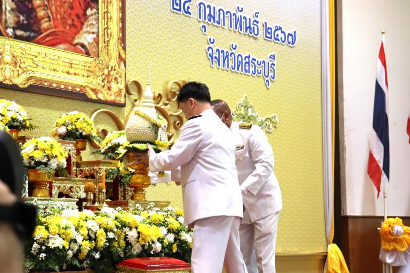 นายอำเภอ หัวหน้าส่วนราชการจังหวัดสระบุรี รัฐวิสาหกิจ องค์กรเอกชน ผู้บริหารองค์กรปกครองส่วนท้องถิ่น เข้าร่วมพิธีฯ ณ หอประชุมศูนย์ราชการจังหวัดสระบุรี ตำบลตะกุด อำเภอเมืองสระบุรี จังหวัดสระบุรี