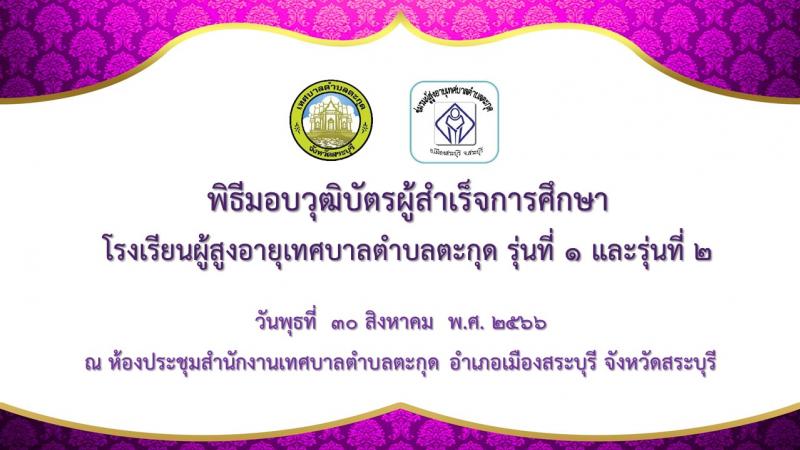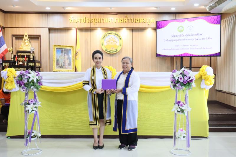 พิธีมอบวุฒิบัตรผู้สำเร็จการศึกษาโรงเรียนผู้สูงอายุเทศบาลตำบลตะกุดรุ่นที่ 1 และรุ่นที่ 2