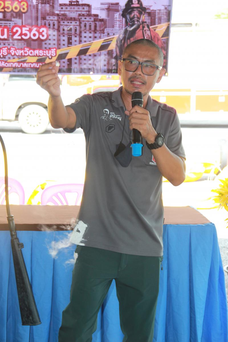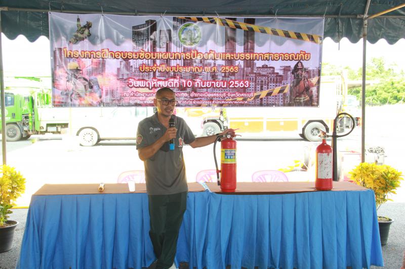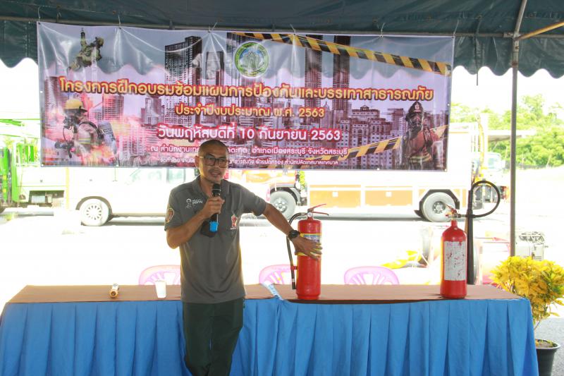 รายละเอียด : วันพฤหัสบดีที่ 10 กันยายน 2563 นายสมศักดิ์ พวงกุหลาบ นายกเทศมนตรีตำบลตะกุด เป็นประธานพิธีเปิด “โครงการฝึกอบรมซ้อมแผนการป้องกันและบรรเทาสาธารณภัย ประจำปี 2563” ณ สำนักงานเทศบาลตำบลตะกุด อำเภอเมืองสระบุรี จังหวัดสระบุรี พร้อมด้วยคณะผู้บริหาร สมาชิกสภาเทศบาล ลูกจ้างประจำ พนักงานจ้าง ผู้ใหญ่บ้าน และประชาชนผู้สนใจ จำนวน 75 คน เข้ารับการฝึกอบรมฯ โดยได้รับเกียรติจากเจ้าหน้าที่สังกัดงานป้องกันและบรรเทาสาธารณภัย เทศบาลเมืองสระบุรี มาเป็นวิทยากรให้ความรู้ฝึกซ้อมการอพยพหนีไฟ ซ้อมการระงับอัคคีภัยบนอาคารสำนักงาน