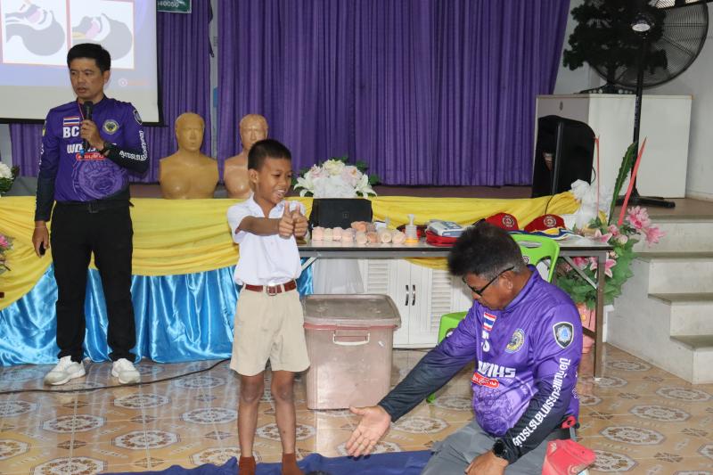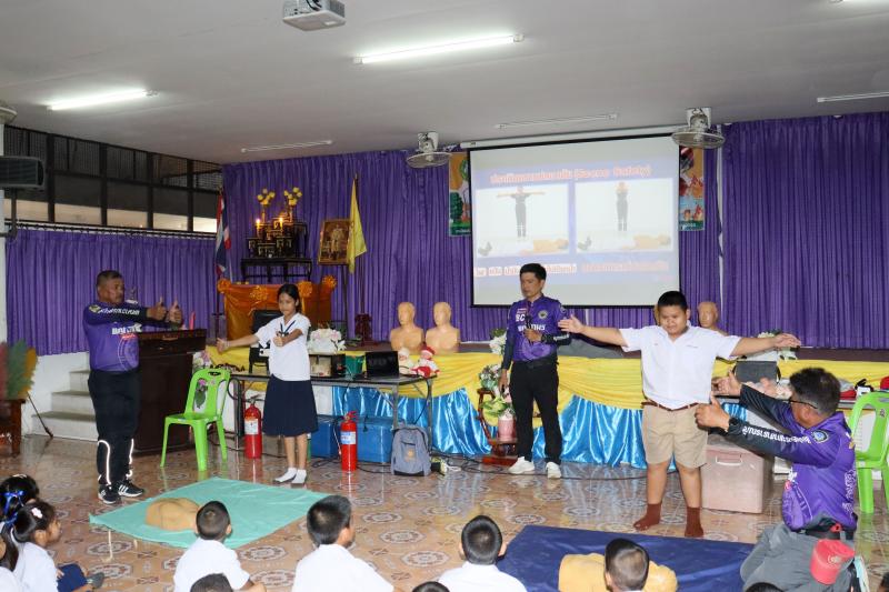ที่มาเป็นวิทยากรอบรมให้ความรู้เกี่ยวกับวิชาสาธารณภัยในพื้นที่และความปลอดภัยในสถานที่ทำงาน/การปฐมพยาบาลเบื้องต้นและการช่วยเหลือผู้ประสบเหตุอาหารติดที่ลำคอ การฟื้นคืนชีพ CPR ทฤษฎี/สาธิต/ฝึกปฏิบัติทฤษฎีการเกิดไฟ/ประเภทของไฟ/ประเภทของถังดับเพลิง/การดับเพลิง/จิตวิทยาต่อเหตุไฟไหม้ โดยกลุ่มเป้าหมายของโครงการประกอบไปด้วย นักเรียน ครูและบุคลากรทางการศึกษาในโรงเรียนวัดบ้านกล้วยและคณะผู้บริหาร สมาชิกสภาเทศบาล กำนันผู้ใหญ่บ้าน ผู้สังเกตการณ์และเจ้าหน้าที่ที่เกี่ยวข้อง