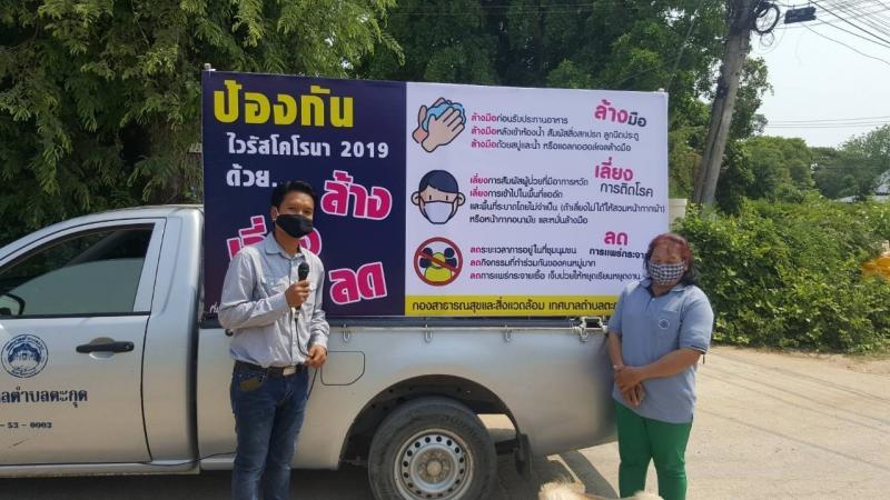 นายสมศักดิ์ พวงกุหลาบ นายกเทศมนตรีตำบลตะกุด ได้มอบหมายให้เจ้าหน้าที่ประชาสัมพันธ์พร้อมด้วย เจ้าหน้าที่กองสาธารณสุขและสิ่งแวดล้อม โรงพยาบาลส่งเสริมสุขภาพตำบลตะกุด ผู้นำชุมชน และตัวแทนอาสาสมัครสาธารณสุขประจำตำบลตะกุด ออกประชาสัมพันธ์ให้ความรู้เกี่ยวกับการป้องกันการแพร่ระบาดของโรคติดเชื้อไวรัสโคโรนา 2019 แก่ประชาชนในพื้นที่ตำบลตะกุด