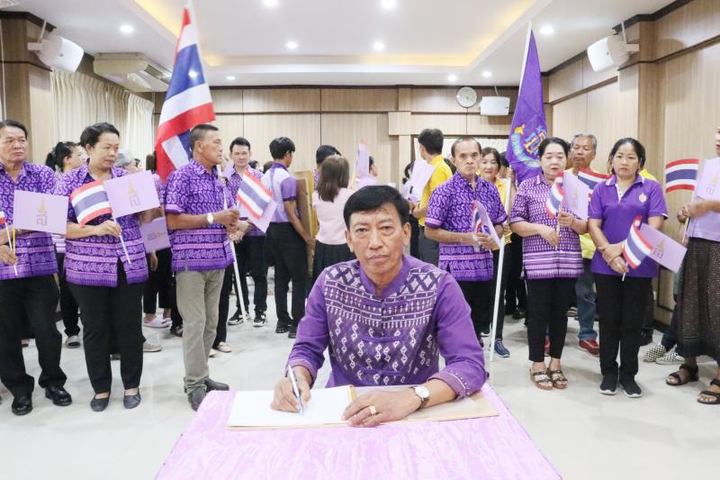 รายละเอียด : วันพุธที่ 14 กุมภาพันธ์ 2567 เวลา 17.00 น.เทศบาลตำบลตะกุด นำโดย นางสาวสิริกัลยา เนตรอินทร์ นายกเทศมนตรีตำบลตะกุด ได้เป็นประธานในพิธีฯ พร้อมด้วย คณะผู้บริหารเทศบาล สมาชิกสภาเทศบาล เขต 1 , เขต 2 หัวหน้าส่วนราชการ พนักงานเทศบาล พนักงานครูเทศบาล ลูกจ้างประจำ พนักงานจ้างตามภารกิจ/ทั่วไป และพนักงานจ้างเหมาบริการการ ได้เข้าร่วมกิจกรรมปกป้องและถวายกำลังใจสมเด็จพระกนิษฐาธิราชเจ้า กรมสมเด็จพระเทพรัตนราชสุดาฯ สยามบรมราชกุมารี คณะผู้บริหารเทศบาลฯ พนักงานและเจ้าหน้าที่ร่วมกันแต่งกายชุดสีม่วงและสีเหลือง แสดงพลังปกป้องและถวายกำลังใจ สมเด็จพระกนิษฐาธิราชเจ้า กรมสมเด็จพระเทพรัตนราชสุดาฯ สยามบรมราชกุมารี ณ ห้องประชุมเทศบาลตำบลตะกุด ชั้น 2 นายกเทศมนตรีตำบลตะกุด ได้เปิดกรวยกระทงดอกไม้และกล่าวคำถวายราชสักการะ หน้าพระบรมฉายาลักษณ์ สมเด็จพระกนิษฐาธิราชเจ้า กรมสมเด็จพระเทพรัตนราชสุดาฯ สยามบรมราชกุมารี นายกเทศมนตรีตำบลตะกุด กล่าวกราบบังคมทูลถวายราชสดุดี ดนตรีบรรเลงเพลงสรรเสริญพระบารมี จากนั้น นายกเทศมนตรีตำบลตะกุดนำผู้ร่วมกิจกรรมลงนามถวายพระพรชัยมงคลแด่สมเด็จพระกนิษฐาธิราชเจ้า กรมสมเด็จพระเทพรัตนราชสุดาฯ สยามบรมราชกุมารี