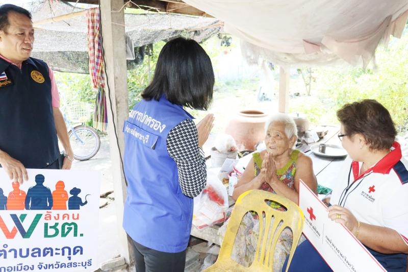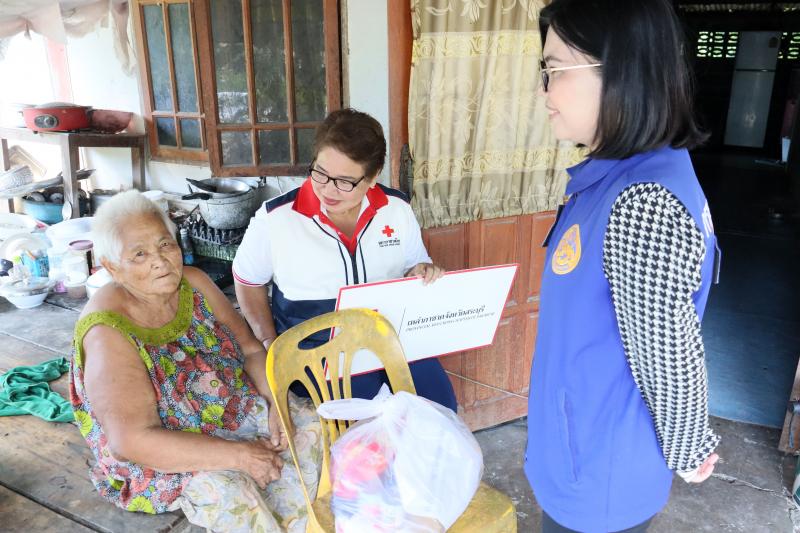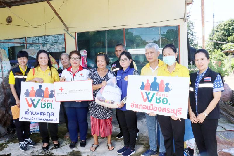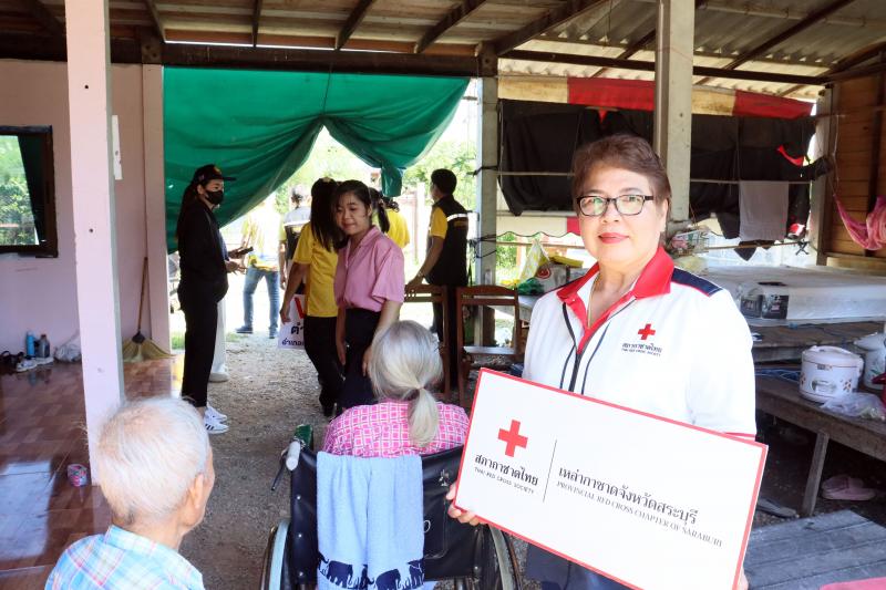 มอบถุงยังชีพโดยสำนักงานเหล่ากาชาดสระบุรี