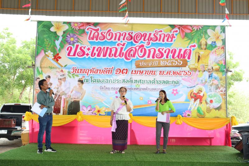 รายละเอียด : เทศบาลตำบลตะกุด ได้กำหนดจัดโครงการอนุรักษ์ประเพณีสงกรานต์ ประจำปีงบประมาณ 2566 ขึ้น ในวันพฤหัสบดีที่ 13 เมษายน 2566 ตั้งแต่เวลา 08.30 น. เป็นต้นไป ณ โดมอเนกประสงค์ เทศบาลตำบลตะกุด หมู่ที่ 6 ตำบลตะกุด โดยได้จัดกิจกรรมการประกวดรำวงมหาดไทยเพื่อคนไทยของผู้สูงอายุ ,การประกวดร้องเพลงลูกทุ่ง , การแสดงดนตรี (แตรวง) ,กิจกรรมการสรงน้ำพระพุทธรูปและรดน้ำขอพรผู้สูงอายุของตำบลตะกุด เพื่อเป็นการแสดงความเคารพน้อมนอบและความกตัญญู ต่อผู้ใหญ่ สร้างความรักความสามัคคีของคนในตำบลตะกุด และร่วมกันอนุรักษ์สืบสานประเพณีสงกรานต์ ให้อยู่คู่สังคมไทยต่อไป