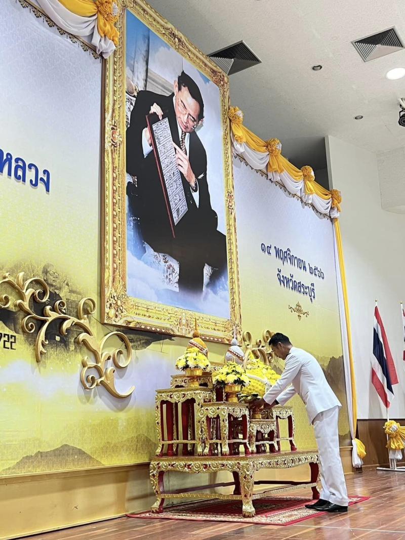 โดยมี นายพลวรรธน์ เทียนชัยมงคล รองผู้ว่าราชการจังหวัดสระบุรี เป็นประธานในพิธีวางพานพุ่มดอกไม้สด เพื่อรำลึกในพระมหากรุณาธิคุณพระบาทสมเด็จพระบรมชนกาธิเบศร มหาภูมิพลอดุลยเดชมหาราช บรมนาถบพิตร เนื่องในวันพระบิดาแห่งฝนหลวง โดยมีหน่วยงานราชการ รัฐวิสาหกิจ หน่วยงานองค์กรปกครองส่วนท้องถิ่น ผู้แทนสมาคมชมรมสโมสร เข้าร่วมพิธี