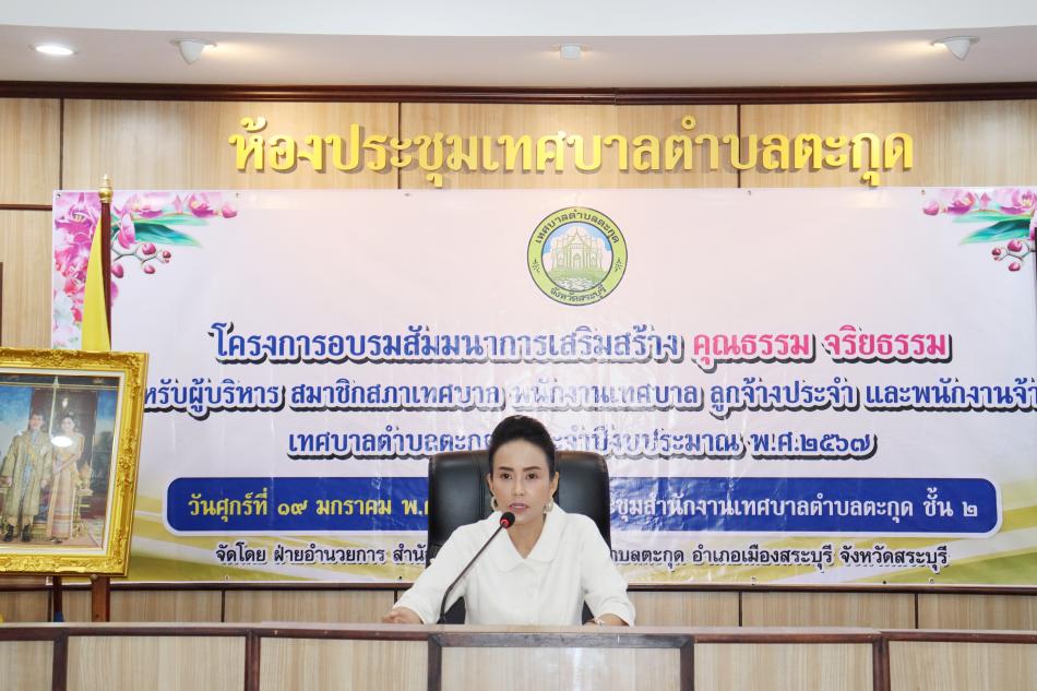 โครงการอบรมสัมมนาเสริมสร้าง คุณธรรม จริญธรรม สำหรับผู้บริหาร สมาชิกสภาเทศบาล พนักงานเทศบาล ลูกจ้างประจำและพนักงานจ้าง เทศบาลตำบลตะกุด ประจำปีงบประมาณ พ.ศ.2567 [19 มกราคม 2567]