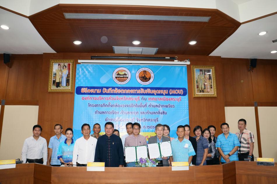 พิธีลงนามบันทึกข้อตกลง (MOU) การรับเงินอุดหนุน โครงการติดตั้งกล้องวงจรปิดในพื้นที่ตำบลปากเพรียว ตำบลดาวเรือง ตำบลตะกุด และตำบลตลิ่งชัน อำเภอเมืองสระบุรี จังหวัดสระบุรี ประจำปีงบประมาณ พ.ศ. 2566 [18 สิงหาคม 2566]