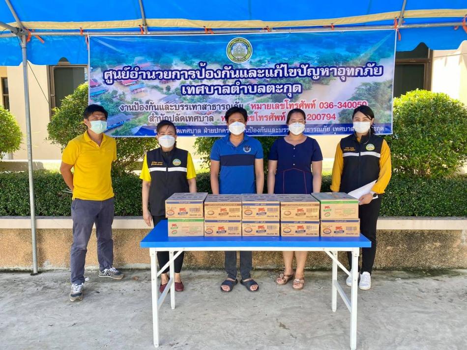 ปลัดเทศบาล นายเสน่ห์ แสงแก้วประธานสภาเทศบาล และสมาชิกสภาเทศบาล เป็นตัวแทนรับมอบน้ำดื่ม จำนวน 20 แพ็ค ขนม 20 ถุง [4 ตุลาคม 2564]