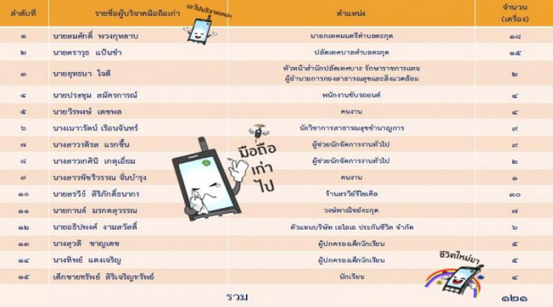 “มือถือเก่าไป ชีวิตใหม่มา” ขอแจ้งรายนามผู้บริจาคโทรศัพท์มือถือเก่ากับเทศบาลตำบลตะกุด ดังนี้ (3 ภาพ)