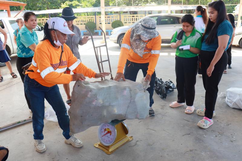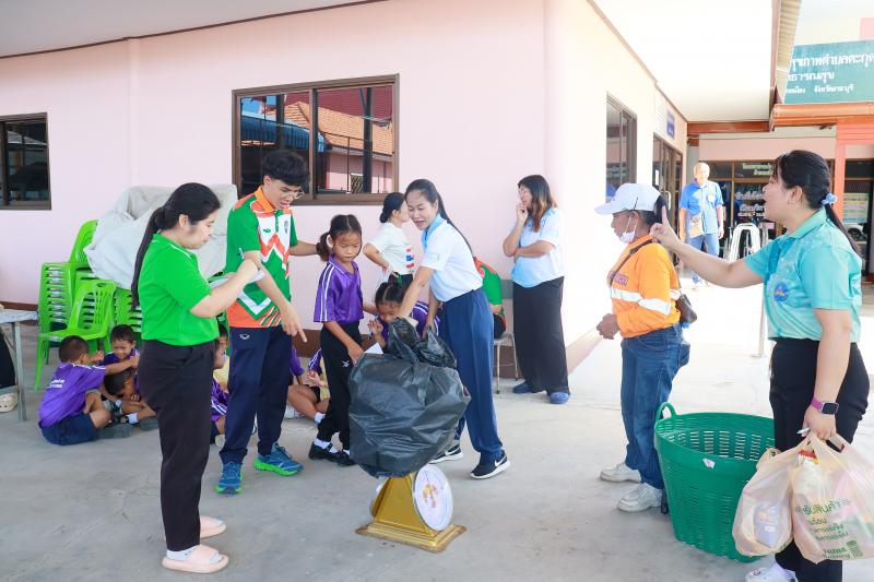 พร้อมด้วย ปลัดเทศบาล ผู้อำนวยการโรงพยาบาลส่งเสริมสุขภาพตำบลตะกุด ผู้อำนวยการโรงเรียนวัดบ้านกล้วย ครู นักเรียน เจ้าหน้าที่โรงพยาบาลส่งเสริมสุขภาพตำบลตะกุด และประชาชนในพื้นที่ตำบลตะกุด กิจกรรมตลาดนัดขยะแลกไข่ ครั้งที่ 4 ตามโครงการลดและคัดแยกขยะมูลฝอยจากต้นทาง ตามหลักการ 3Rs (Reduce, Reuse, Recycle) ประจำปีงบประมาณ พ.ศ.2568 ณ โรงพยาบาลส่งเสริมสุขภาพตำบลตะกุด