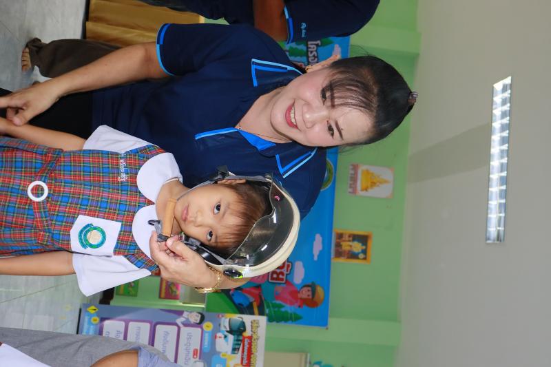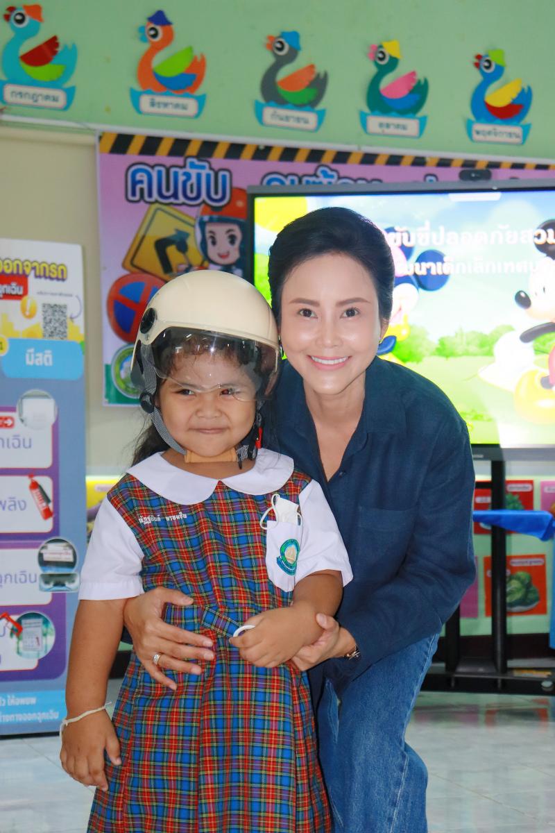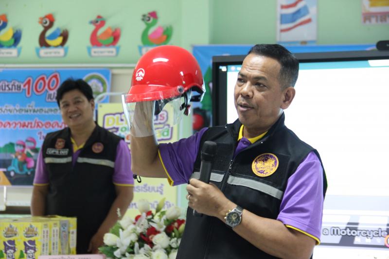 2. กิจกรรมการอบรมภาคปฏิบัติ เรื่อง การสาธิตการสวมหมวกนิรภัยอย่างถูกวิธี / สร้างสถานการณ์จำลองการขับขี่ปลอดภัย ให้แก่เด็กนักเรียนและผู้ปกครอง