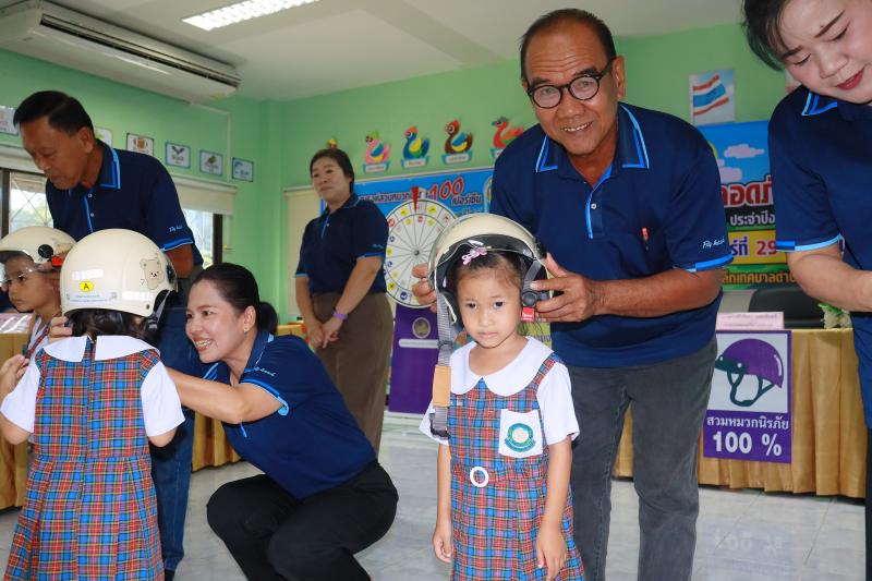 รายละเอียด : วันศุกร์ที่ 29 สิงหาคม 2568 เวลา 08.30 น. เทศบาลตำบลตะกุด นำโดย นางสาวสิริกัลยา เนตรอินทร์ นายกเทศมนตรีตำบลตะกุด เป็นประธานพิธีเปิดโครงการขับขี่ปลอดภัย สวมหมวกนิรภัย ประจำปีงบประมาณ พ.ศ. 2568 พร้อมด้วย คณะผู้บริหารเทศบาล สมาชิกสภาเทศบาลเขต1 , เขต 2 ผู้อำนวยการโรงเรียนวัดบ้านกล้วย คณะครู และผู้ปกครองนักเรียนศูนย์พัฒนาเด็กเล็กฯ ซึ่งจัดโดย กองการศึกษาและศูนย์พัฒนาเด็กเล็กเทศบาลตำบลตะกุด โดยมีวัตถุประสงค์เพื่อให้เด็กปฐมวัย ครู และผู้ปกครอง มีความรู้ความเข้าใจและตระหนักถึงความปลอดภัยทางถนน และส่งเสริมนโยบายรัฐในการรณรงค์ให้พื้นที่ศูนย์พัฒนาเด็กเล็กเป็นพื้นที่ปลอดภัยทางถนนด้วยการสวมหมวกนิรภัย 100%