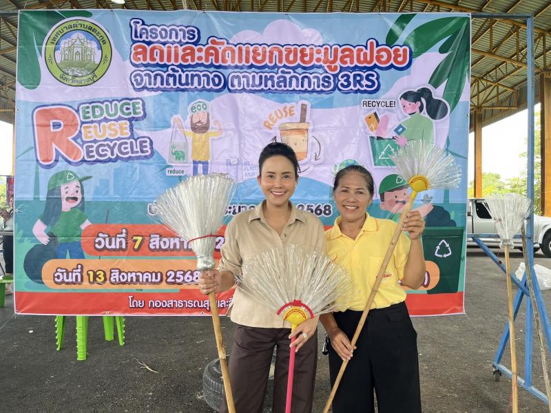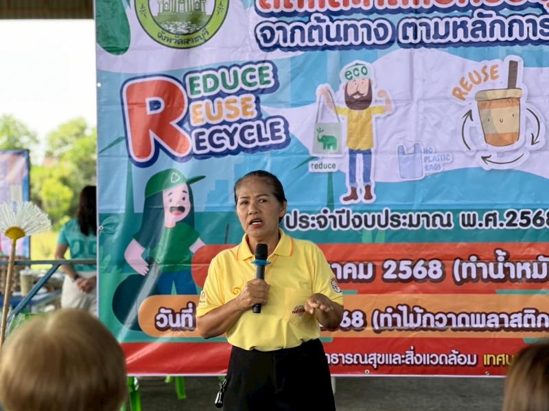 รายละเอียด : วันที่ 13 สิงหาคม 2568 เวลา 09.00 น. นางสาวสิริกัลยา เนตรอินทร์ นายกเทศมนตรีตำบลตะกุด พร้อมด้วย นางจันทรา แรกขึ้น เลขานุการนายกเทศมนตรี , นายปรีชา แก้วปัญญา ที่ปรึกษานายกเทศมนตรี และประชาชนในพื้นที่ตำบลตะกุด เข้าร่วมโครงการลดและคัดแยกขยะมูลฝอยจากต้นทาง ตามหลักการ 3Rs (Reduce, Reuse, Recycle) ประจำปีงบประมาณ พ.ศ.2568 กิจกรรมอบรมให้ความรู้เรื่องการคัดแยกขยะ และการเพิ่มมูลค่าของขยะรีไซเคิลด้วยการฝึกปฏิบัติทำไม้กวาดพลาสติกจากขวดน้ำอัดลม ณ โดมอเนกประสงค์เทศบาลตำบลตะกุด ทั้งนี้ได้รับเกียรติจากวิทยากร นางสาวสมคิด มะลิวัลย์ รองประธานสภาองค์การบริหารส่วนตำบลหนองนากและคณะ