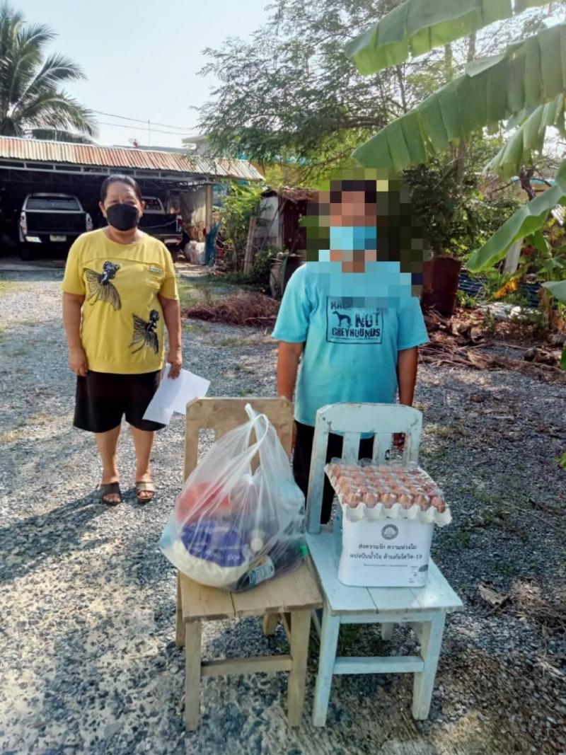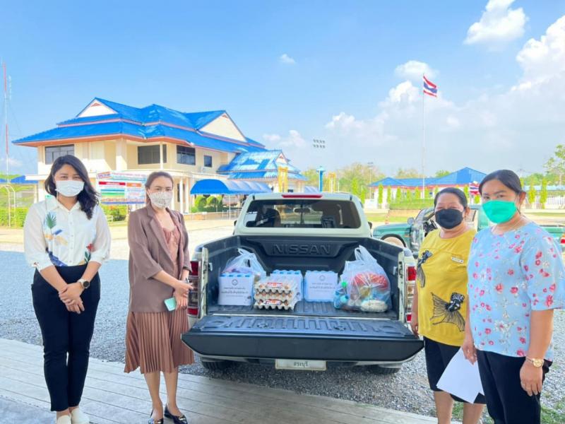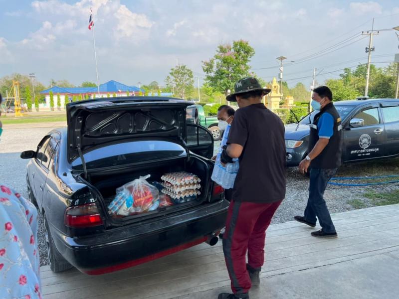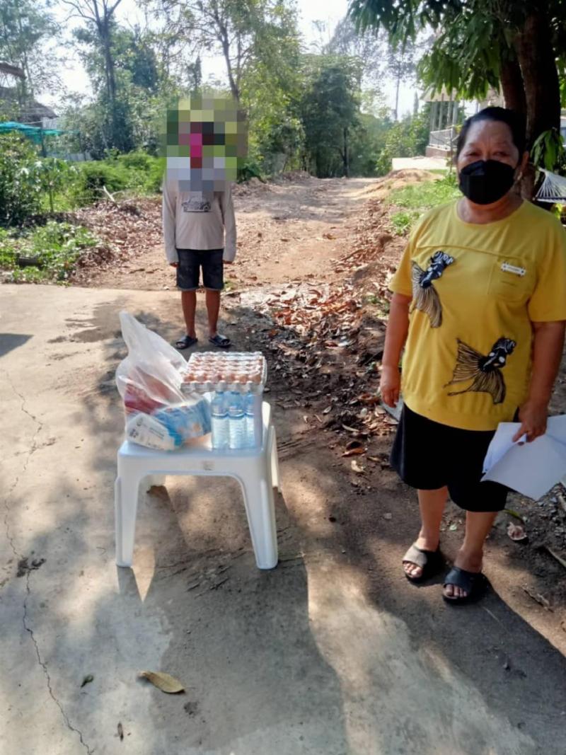 สมาชิกสภาเทศบาลลงพื้นที่มอบชุดเครื่องอุปโภคบริโภคให้กับผู้ได้รับผลกระทบจากสถานการณ์การแพร่ระบาดของโรคโควิด-19 หมู่ 5 และ หมู่ 6