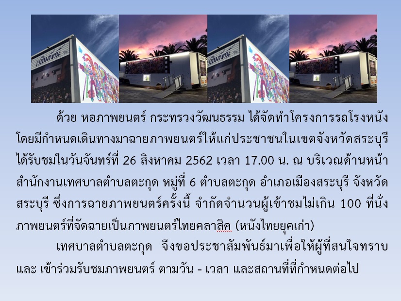 ข่าวประชาสัมพันธ์ เรื่อง โครงการรถโรงหนัง(รถฉายภาพยนตร์เคลื่อนที่)