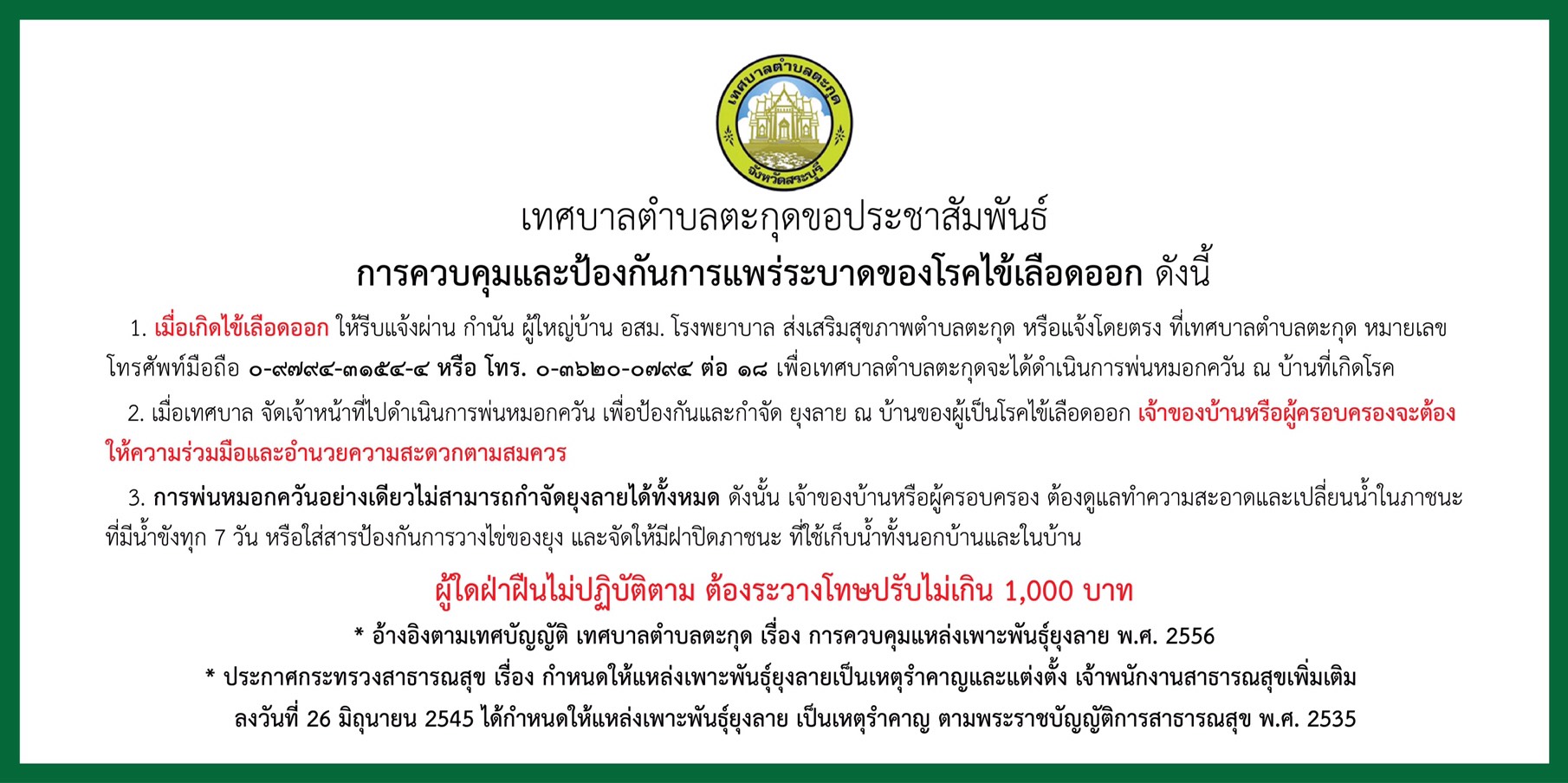 ข่าวประชาสัมพันธ์ เรื่อง ควบคุมและป้องกันการแพร่ระบาดของโรคไข้เลือดออก