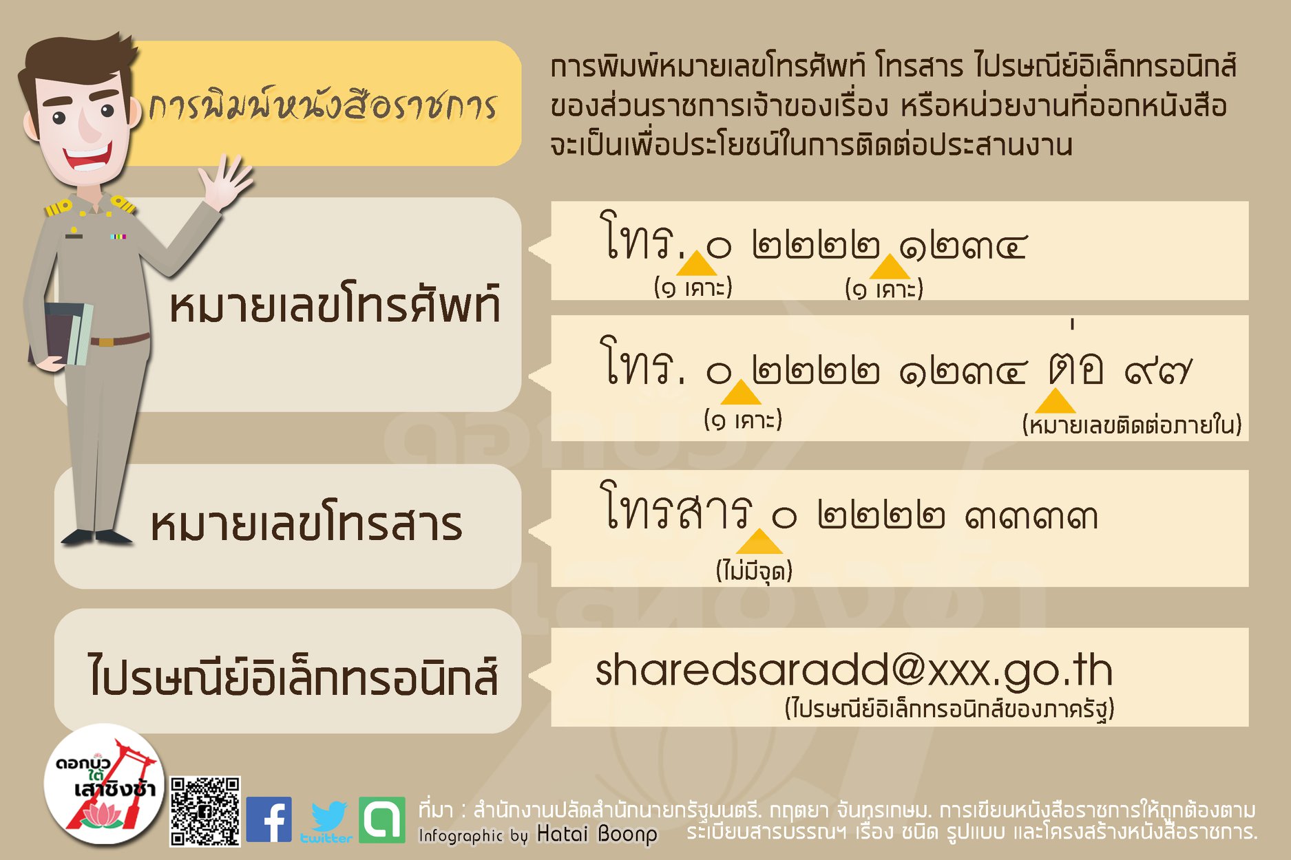 การพิมพ์หนังสือราชการ ประเภทหมายเลขโทรศัพท์ โทรสาร อีเมล์