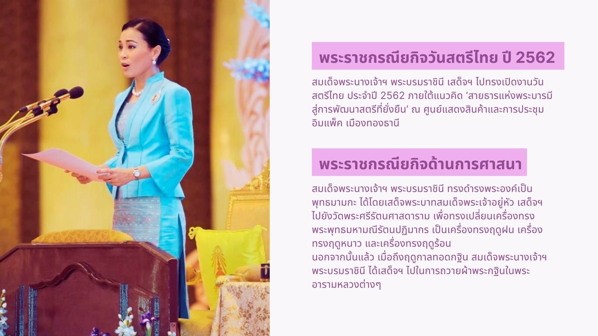 รวมพระราชกรณียกิจ ของสมเด็จพระนางเจ้าสุทิดาฯ พระบรมราชินี เพื่อเป็นการเฉลิมพระเกียรติและร่วมแสดงความจงรักภักดี เนื่องในโอกาสวันเฉลิมพระชนมพรรษาครบ ๔๓