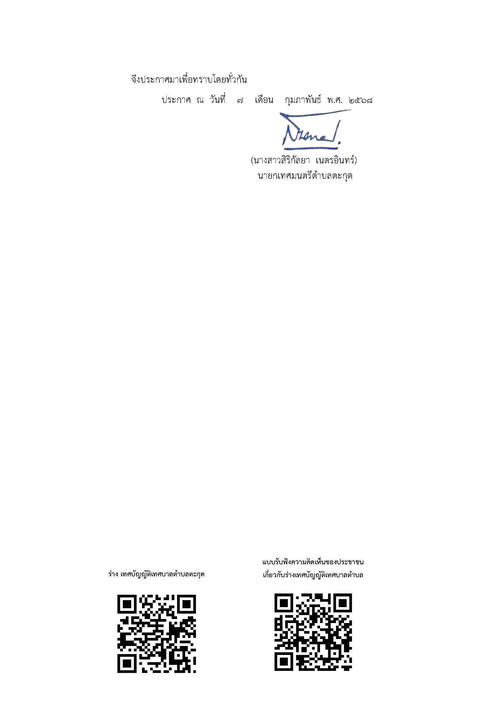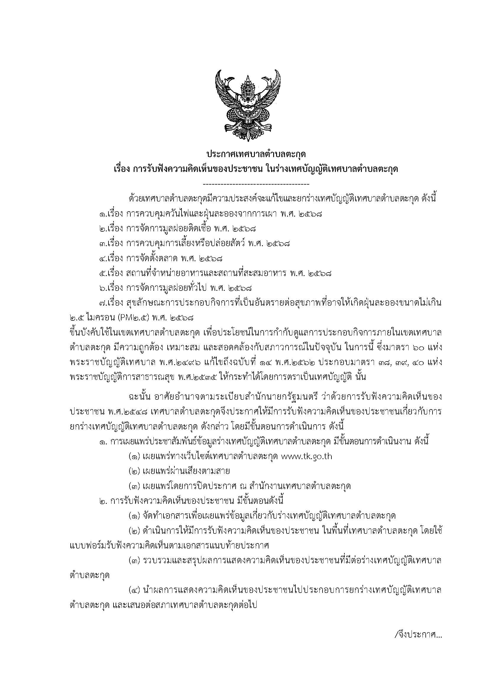 ประกาศเทศบาลตำบลตะกุด เรื่อง การรับฟังความคิดเห็นของประชาชน ในร่างเทศบัญญัติเทศบาลตำบลตะกุด