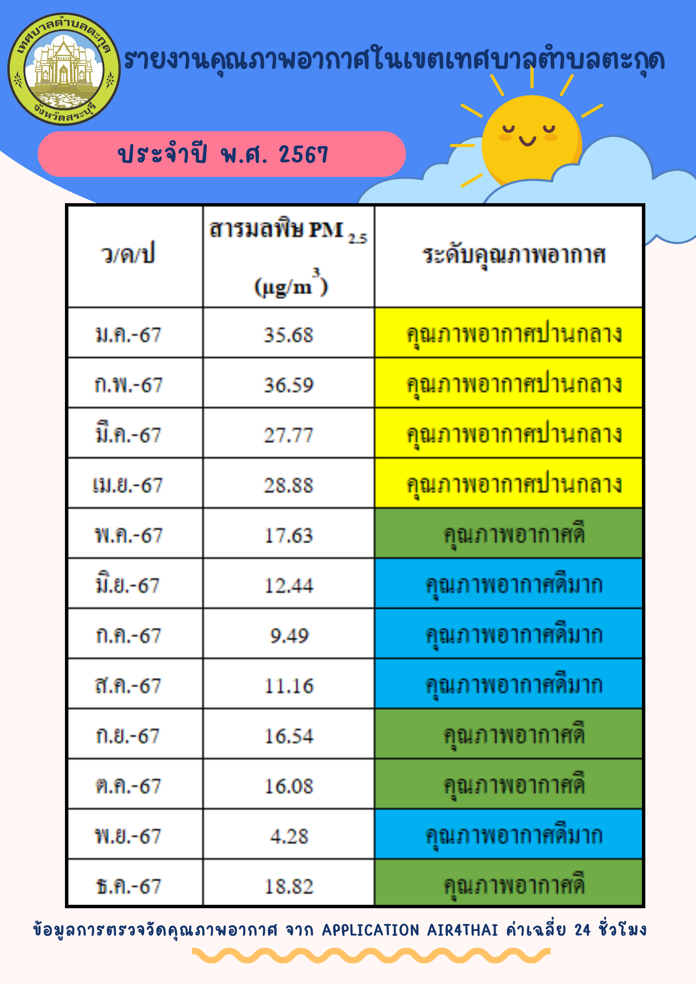 รายงานคุณภาพอากาศในเขตเทศบาลตำบลตะกุด ประจำปี พ.ศ. 2567