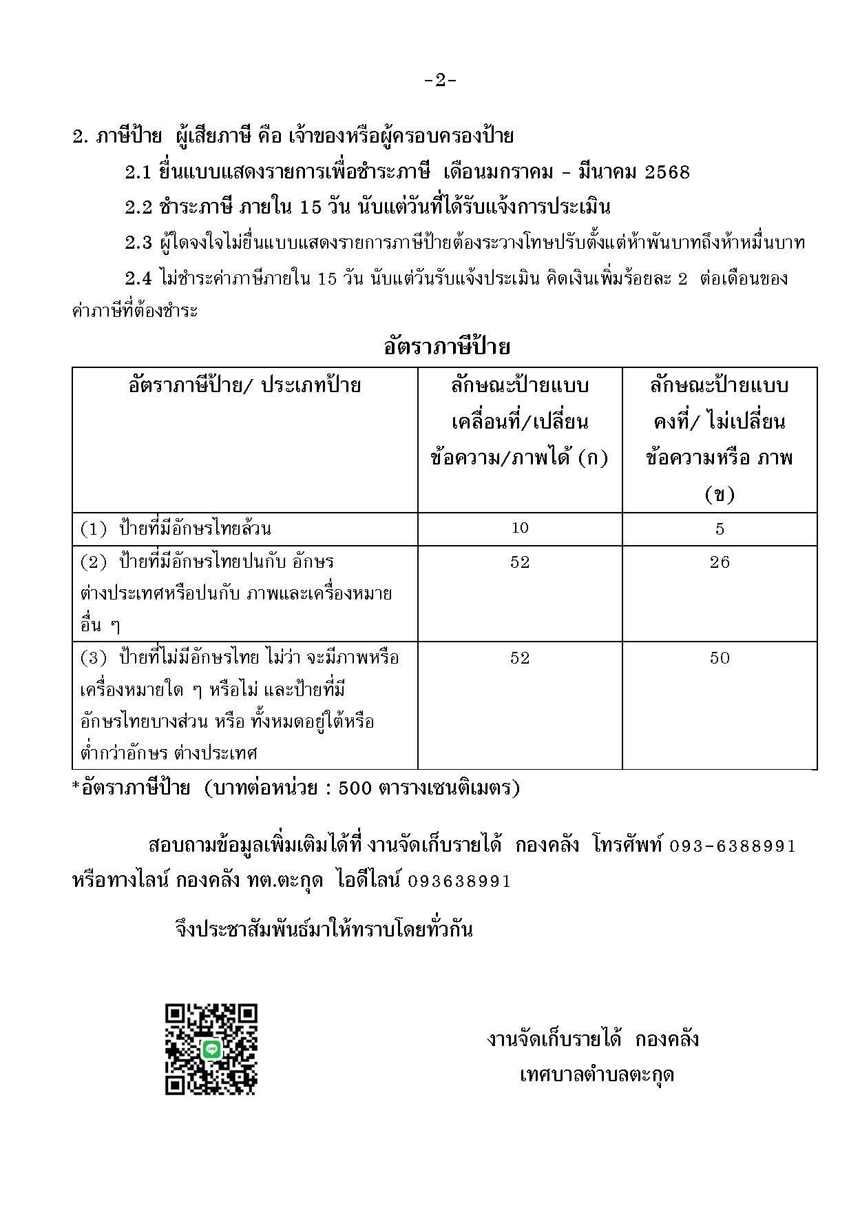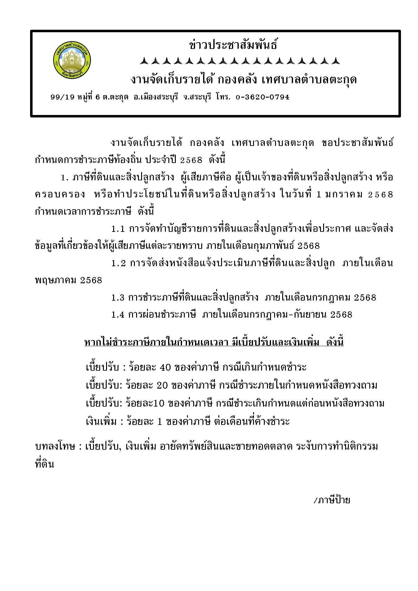 "ประชาสัมพันธ์กำหนดการชำระภาษีท้องถิ่น ประจำปี 2568"