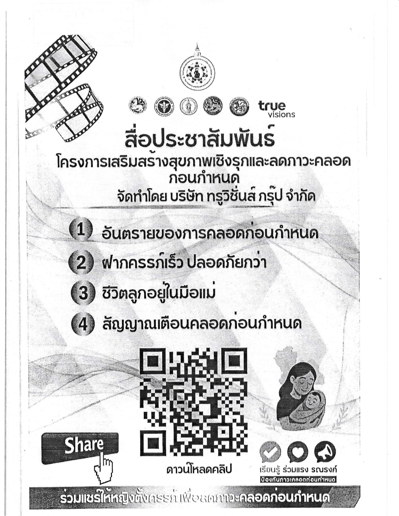 ชื่อเรื่อง : ประชาสัมพันธ์สื่อ โครงการเสริมสร้างสุขภาพเชิงรุกและลดภาวะคลอดก่อนกำหนด
