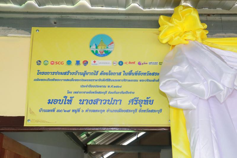 พิธีมอบบ้านผู้ยากไร้ตามโครงการซ่อมสร้างบ้านผู้ยากไร้ ด้อยโอกาส ในพื้นที่จังหวัดสระบุรี ราย นางสาวปภา ศรีอุทัย บ้านเลขที่ 59/27 หมู่ที่ 6