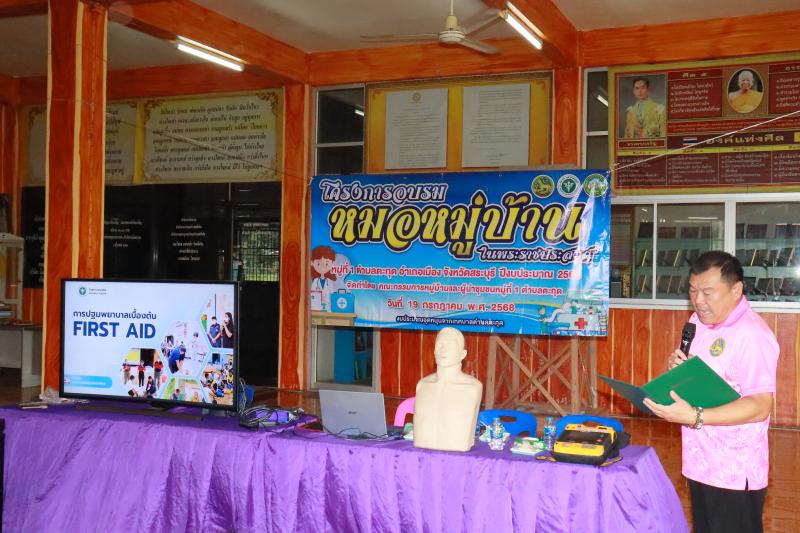 รายละเอียด : วันพฤหัสบดีที่ 28 สิงหาคม พ.ศ. 2568 เวลา 10.30 น. นางสาวสิริกัลยา เนตรอินทร์ นายกเทศมนตรีตำบลตะกุด ได้เป็นประธานเปิดโครงการอบรมหมอหมู่บ้านในพระราชประสงค์ หมู่ที่ 1 ตำบลตะกุด อำเภอเมือง จังหวัดสระบุรี ประจำปีงบประมาณ 2568
