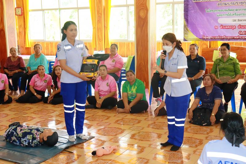 วัตถุประสงค์เพื่อเป็นการสืบสานพระราชประสงค์ของพระบาทสมเด็จพระบรมชนกาธิเบศร มหาภูมิพลอดุลเดยมหาราช บรมนาถบพิตร ให้คนในหมู่บ้านสามารถช่วยเหลือเพื่อนร่วมหมู่บ้านของตนเองได้ โดยมีกลุ่มเป้าหมาย คือ ฝ่ายปกครอง , อาสาสมัครสาธารณสุขประจำหมู่บ้าน จิตอาสาตำบลตะกุด จำนวน 75 คน