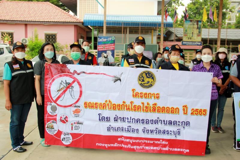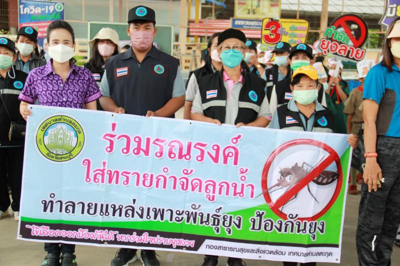 นางสาวสิริกัลยา เนตรอินทร์ นายกเทศมนตรีตำบลตะกุด เป็นประธานในพิธีเปิดโครงการ “ป้องกันและควบคุมโรคไข้เลือดออก” ประจำปีงบประมาณ 2565 "กิจกรรมเดินรณรงค์สร้างจิตสำนึกในการป้องกันและควบคุมลูกน้ำยุงลาย"