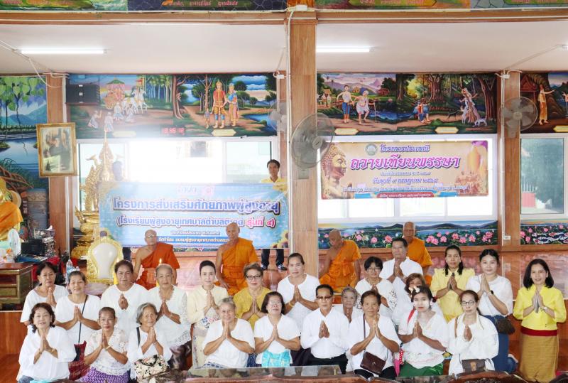 กิจกรรมการเรียนการสอนของโรงเรียนผู้สูงอายุเทศบาลตำบลตะกุด วิชาที่ 1 "วิชาพระพุทธศาสนาและการนำหลักทางพระพุทธศาสนามาใช้ในชีวิตประจำวัน"