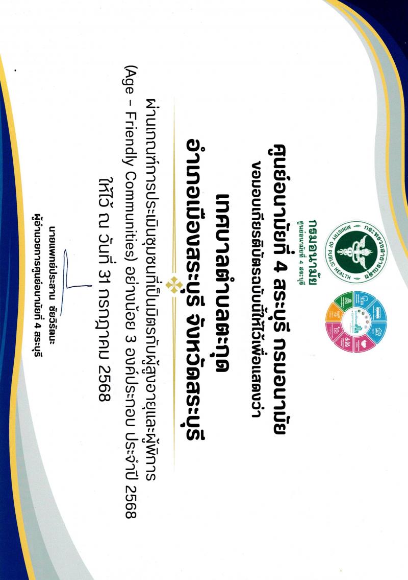 รับประกาศนียบัตร "รางวัลชุมชนที่เป็นมิตรกับผู้สูงอายุและผู้พิการ ประจำปี พ.ศ.2568"