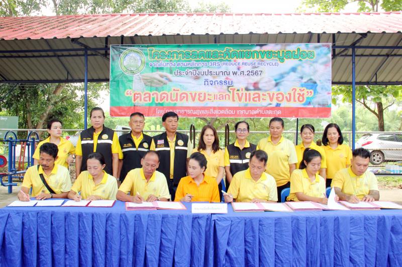 กิจกรรม ตลาดนัดขยะ “แลกไข่และของใช้” ตามโครงการลดและคัดแยกขยะจากต้นทาง ตามหลักการ 3RS (Reduse Reuse Recycle) ประจำปีงบประมาณ 2567 ณ วัดตะกุด หมู่ที่ 2