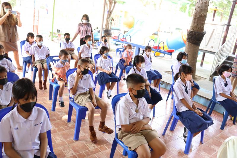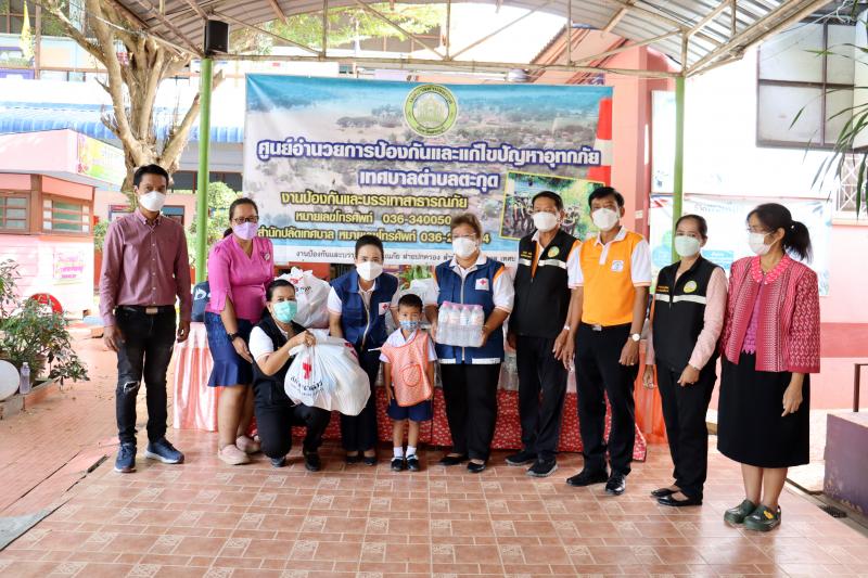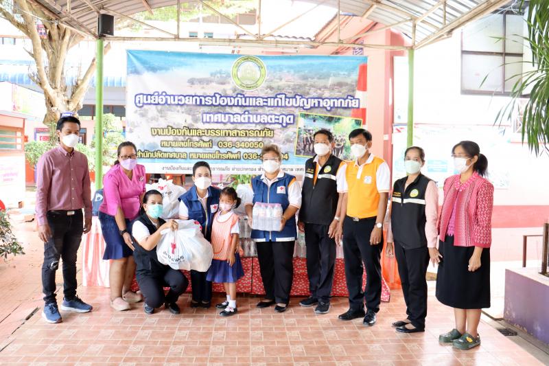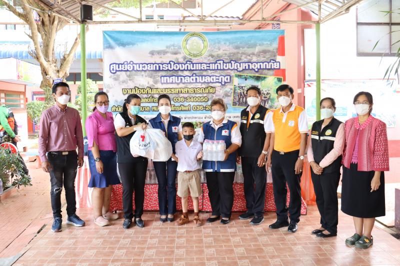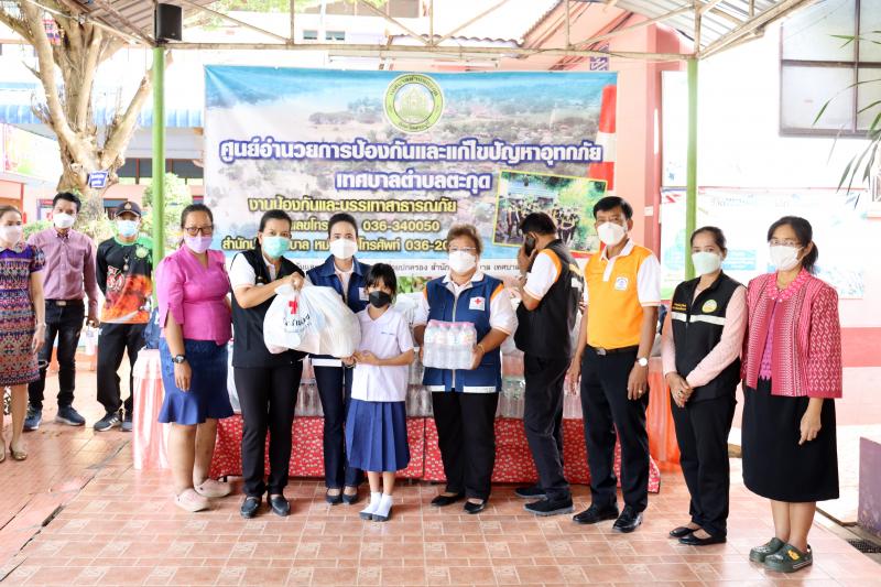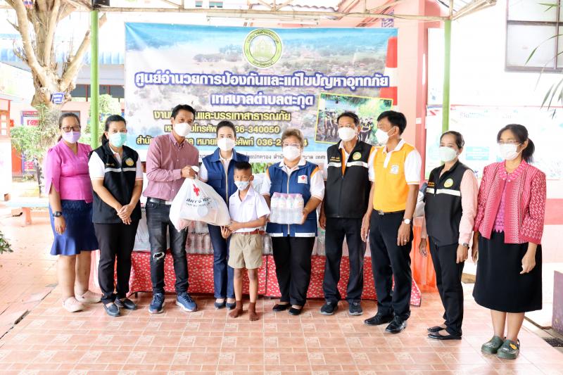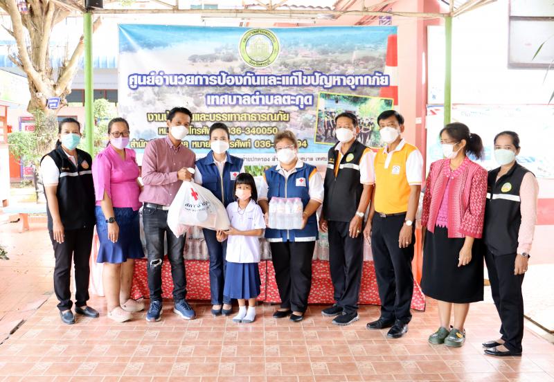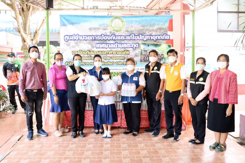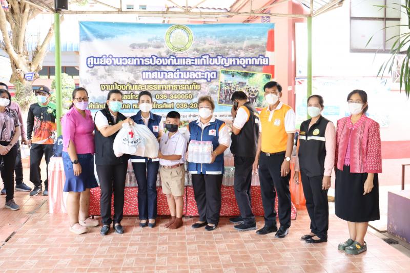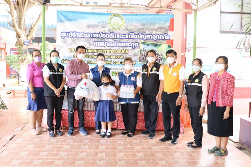 แจกถุงยังชีพ “ชุดธารน้ำใจ" ช่วยเหลือผู้ประสบภัยจากสภากาชาดไทย ให้กับเด็กนักเรียนโรงเรียนวัดบ้านกล้วย