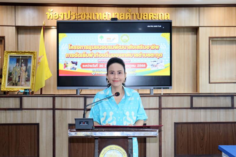 นางสาวสิริกัลยา เนตรอินทร์ นายกเทศมนตรีตำบลตะกุด เป็นประธานในพิธีเปิด “โครงการชุมชนอบรมพัฒนาส่งเสริมอาชีพการตัดเย็บผ้าท้องถิ่นของเทศบาลตำบลตะกุด ประจำปีงบประมาณ พ.ศ. 2568” ณ ห้องประชุมเทศบาลตำบลตะกุด ชั้น 2