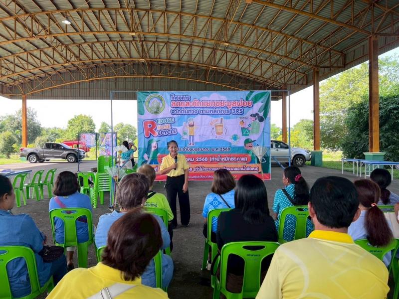 นางสาวสิริกัลยา เนตรอินทร์ นายกเทศมนตรีตำบลตะกุด พร้อมด้วย นางจันทรา แรกขึ้น เลขานุการนายกเทศมนตรี , นายปรีชา แก้วปัญญา ที่ปรึกษานายกเทศมนตรี และประชาชนในพื้นที่ตำบลตะกุด เข้าร่วมโครงการลดและคัดแยกขยะมูลฝอยจากต้นทาง ตามหลักการ 3Rs (Reduce, Reuse, Recycle) ประจำปีงบประมาณ พ.ศ.2568 กิจกรรมอบรมให้ความรู้เรื่องการคัดแยกขยะ และการเพิ่มมูลค่าของขยะรีไซเคิลด้วยการฝึกปฏิบัติทำไม้กวาดพลาสติกจากขวดน้ำอัดลม ณ โดมอเนกประสงค์เทศบาลตำบลตะกุด ทั้งนี้ได้รับเกียรติจากวิทยากร นางสาวสมคิด มะลิวัลย์ รองประธานสภาองค์การบริหารส่วนตำบลหนองนากและคณะ