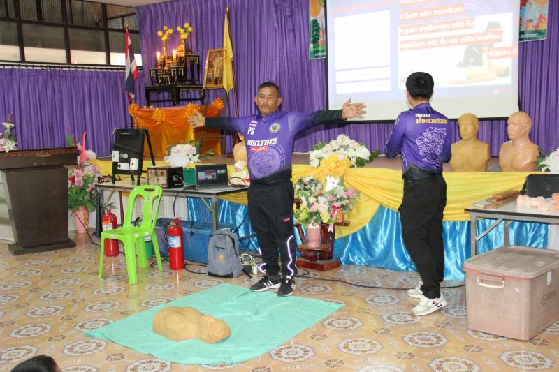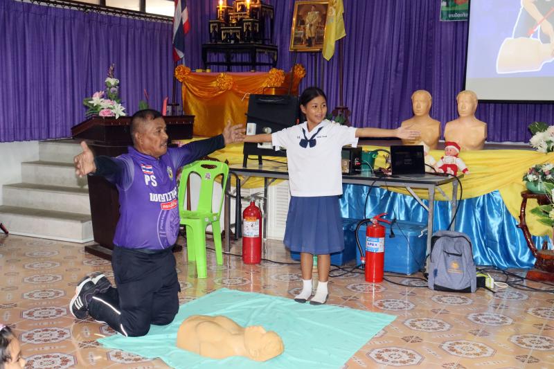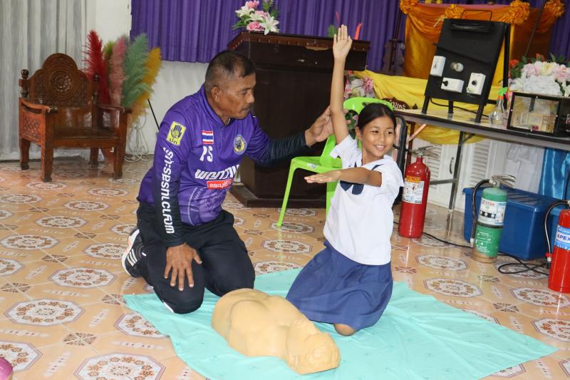 ที่มาเป็นวิทยากรอบรมให้ความรู้เกี่ยวกับวิชาสาธารณภัยในพื้นที่และความปลอดภัยในสถานที่ทำงาน/การปฐมพยาบาลเบื้องต้นและการช่วยเหลือผู้ประสบเหตุอาหารติดที่ลำคอ การฟื้นคืนชีพ CPR ทฤษฎี/สาธิต/ฝึกปฏิบัติทฤษฎีการเกิดไฟ/ประเภทของไฟ/ประเภทของถังดับเพลิง/การดับเพลิง/จิตวิทยาต่อเหตุไฟไหม้ โดยกลุ่มเป้าหมายของโครงการประกอบไปด้วย นักเรียน ครูและบุคลากรทางการศึกษาในโรงเรียนวัดบ้านกล้วยและคณะผู้บริหาร สมาชิกสภาเทศบาล กำนันผู้ใหญ่บ้าน ผู้สังเกตการณ์และเจ้าหน้าที่ที่เกี่ยวข้อง