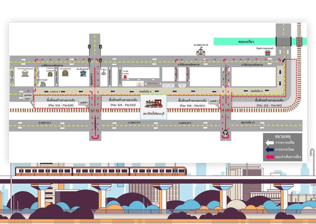 ชื่อเรื่อง : รูปแบบการจัดจราจรเพื่อดำเนินการก่อสร้างโครงสร้างทางยกระดับถนนหน้าสำนักงานสาธารณสุข ถึง สะพานคลองเพรียว