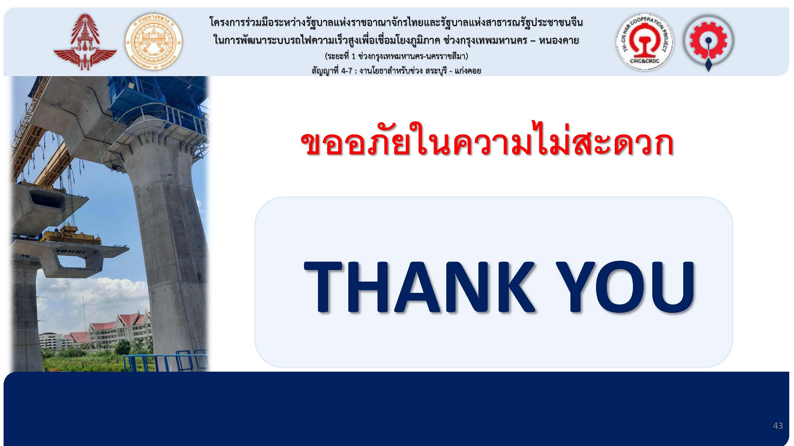 ด้วย บริษัท ซิวิลเอนจีเนียริง จำกัด (มหาชน) จะทำการก่อสร้างทางยกระดับรถไฟฟ้าความเร็วสูง ข้ามจุดตัดทางข้ามรถไฟหน้าศูนย์ราชการ จึงขอแจ้งให้ผู้ใช้รถใช้ถนน ได้รับทราบ และวางแผนในการใช้เส้นทางดังกล่าว หากไม่มีกิจจำเป็น ให้หลีกเลี่ยงเส้นทางบริเวณทางข้ามรถไฟหน้าศูนย์ราชการจังหวัดสระบุรี ระหว่างวันที่ 27 สิงหาคม 2565 ถึงวันที่ 5 กันยายน 2565 (เป็นเวลา 10 วัน) ต้องขออภัยในความไม่สะดวกมา ณ ที่นี้ด้วยคะ